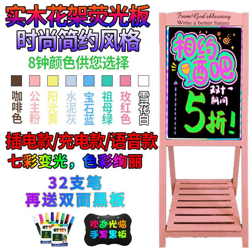 实木小黑板LED荧光板花架黑板儿童画板LED黑板立式画板广告版