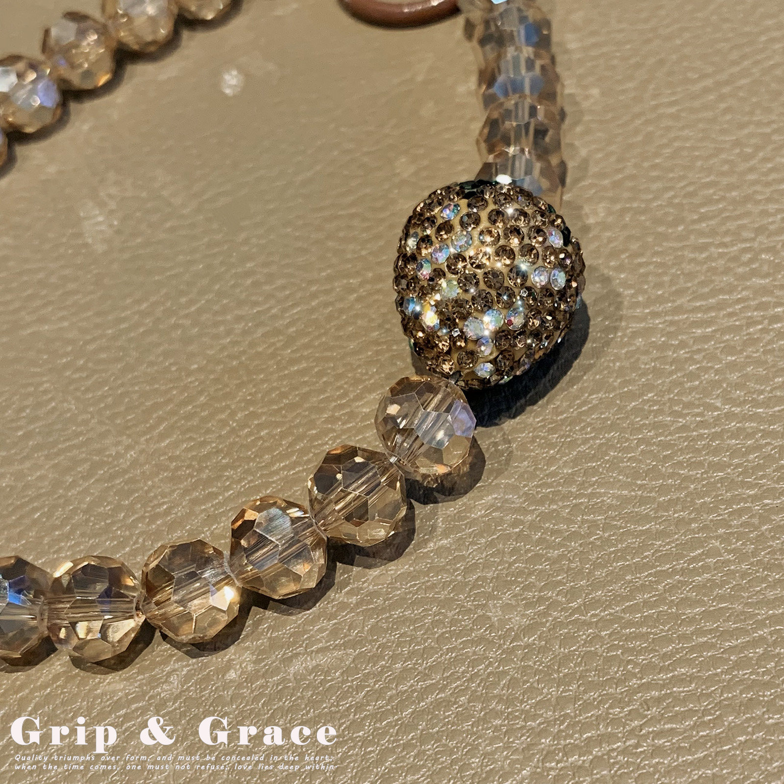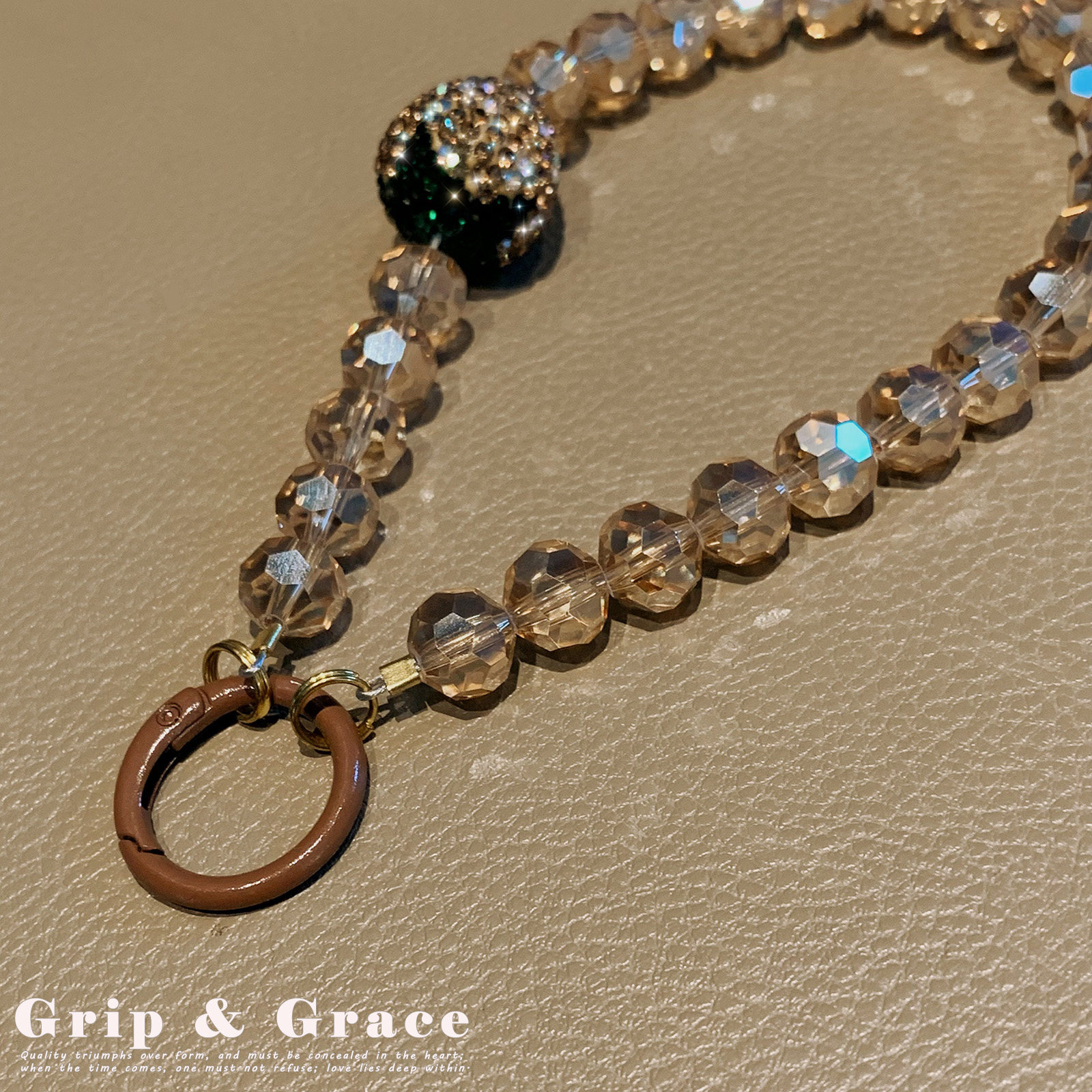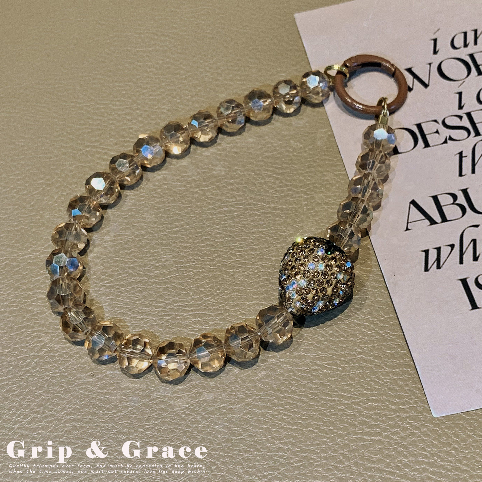 轻奢高级感水晶珠爱心锆石手机链手腕挂件珠饰包挂防丢挂件钥匙扣