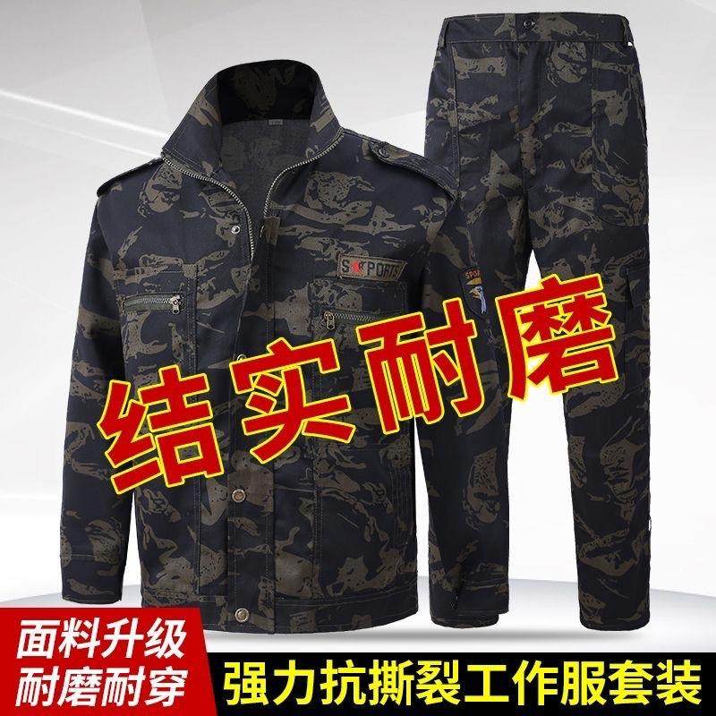 春秋防刮透气工作服长袖速干汽修机修劳保服男建筑工人穿的迷彩服