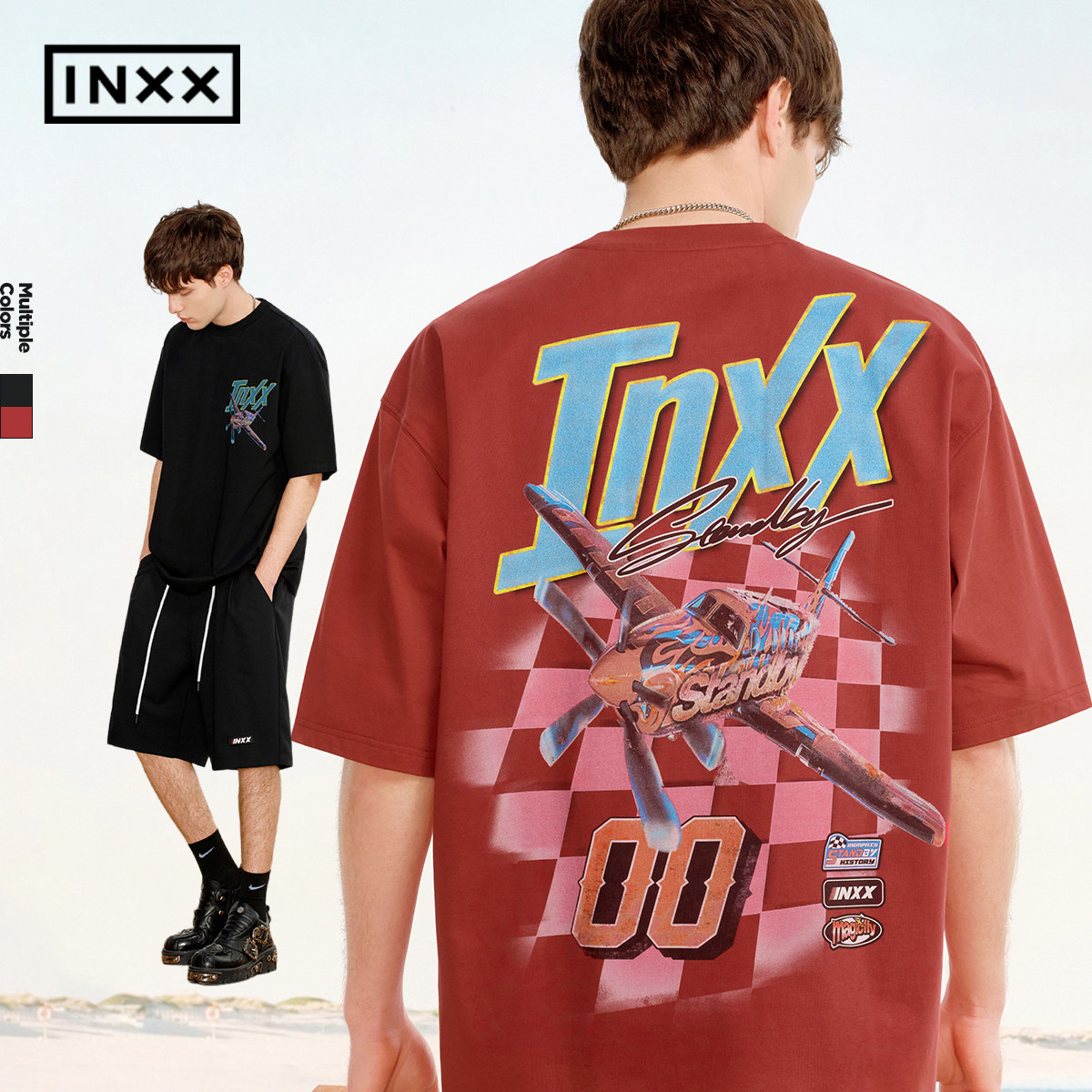 INXX街头复古乐队T恤男生潮牌字母涂鸦印花短袖重磅五分袖女