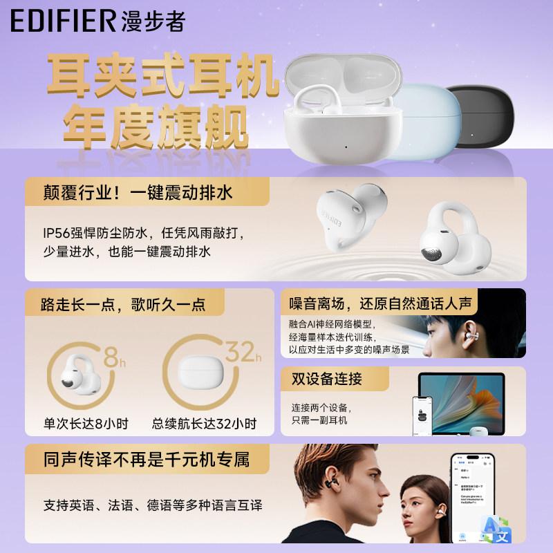 漫步者qq耳夹ComfoClipQ蓝牙耳机不入耳开放式无线运动跑步2025新