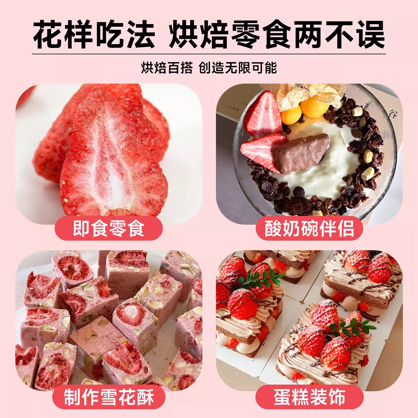 冻干草莓干500g水果干雪花酥烘焙专用整颗草莓脆儿童孕妇休闲零食