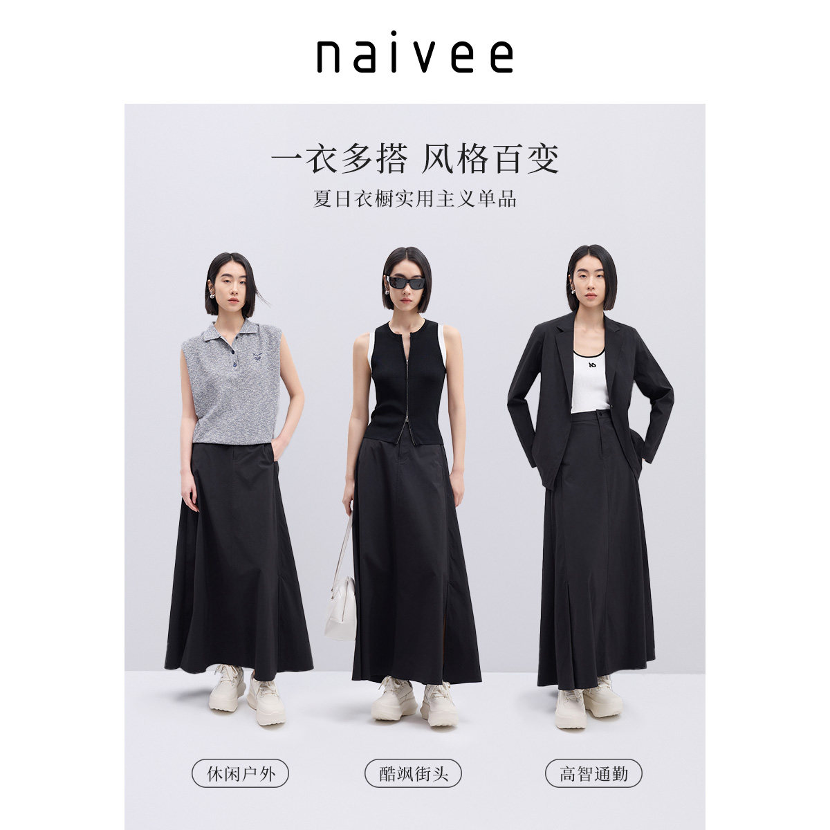 【UPF100+防晒伞裙】商场同款naivee纳薇25夏户外穿搭半身裙长裙