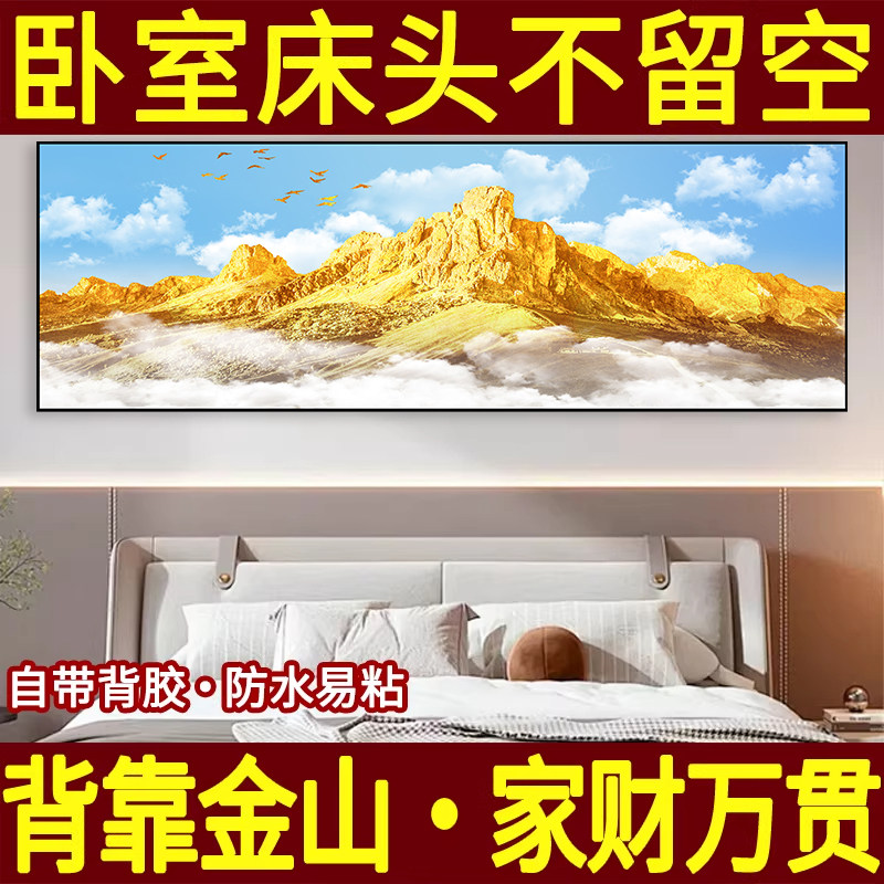 床头贴画装饰画客厅沙发背景自粘卧室墙贴3D现代风景轻奢山水墙纸
