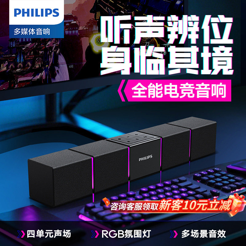 飞利浦电脑音响台式家用桌面麦克风一体游戏电竞蓝牙音箱 SPA5600