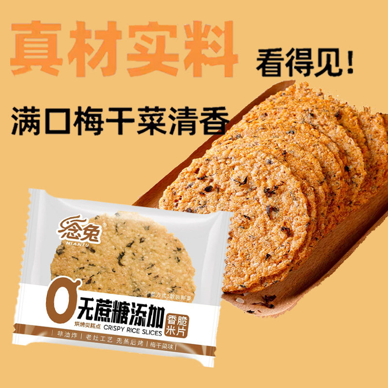 念兔香脆米片烤锅巴手工非油炸梅干菜味薄片零食饼干散装好吃传统