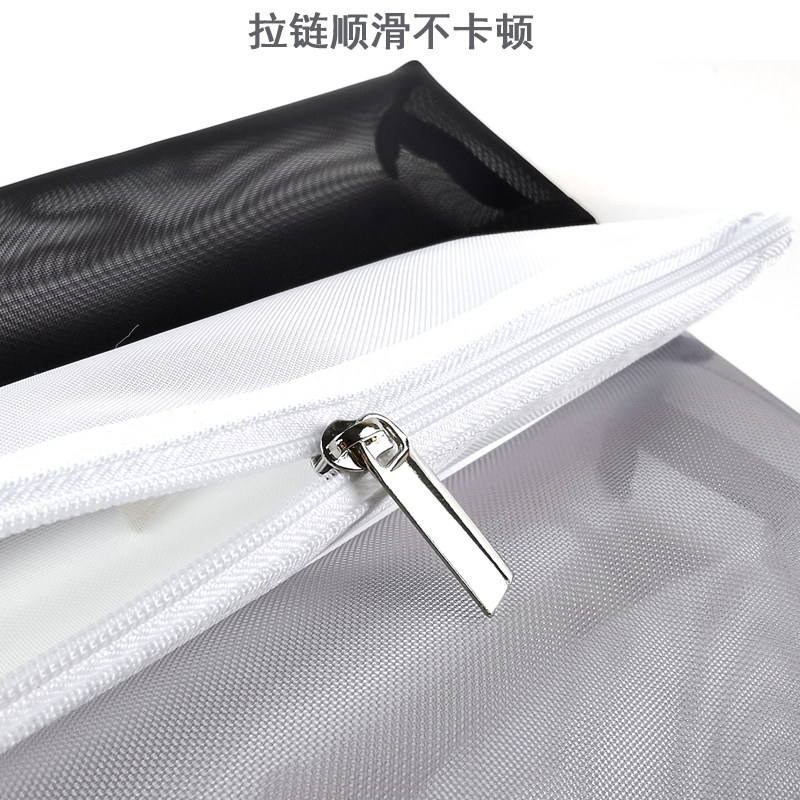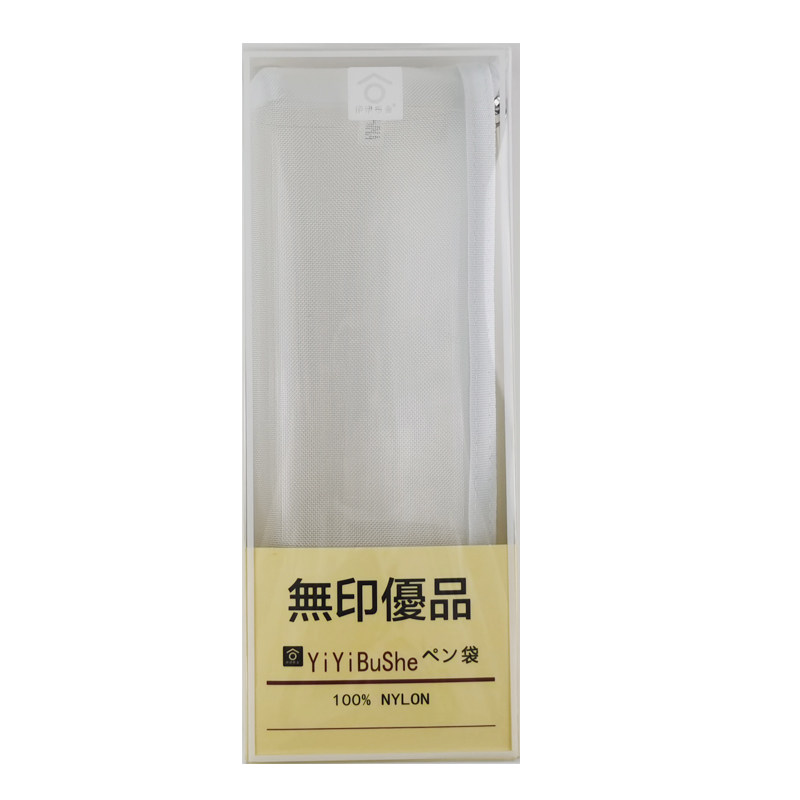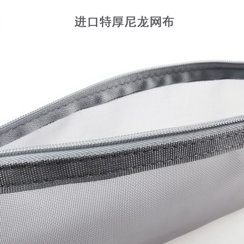 无印优品网纱笔袋大容量单双层网格简约小学生考试通用铅笔文具袋
