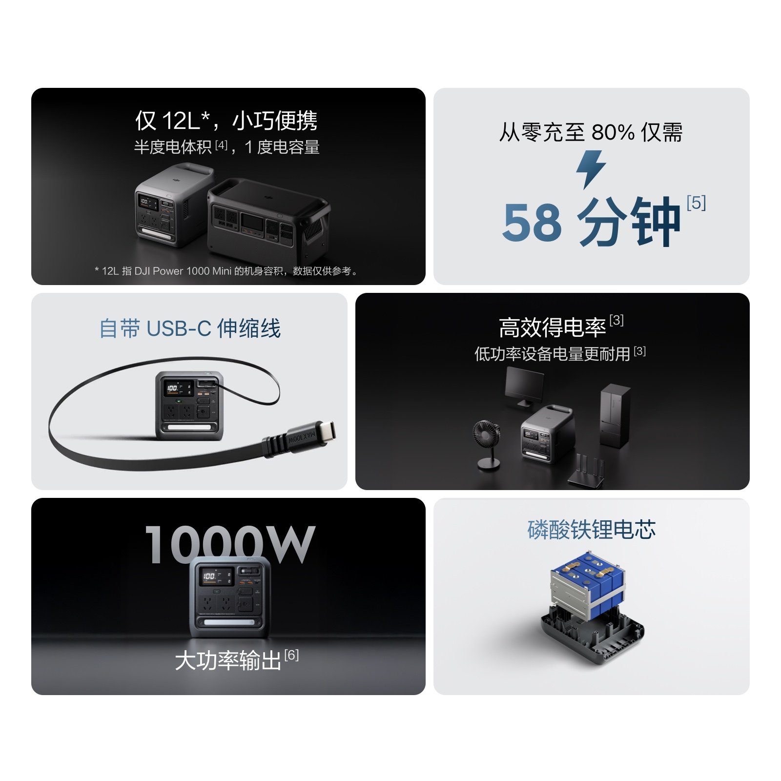 大疆【1度电旗舰新品】DJI Power 1000 Mini 移动电源220V快充便携自驾露营车载应急备用储能户外电源