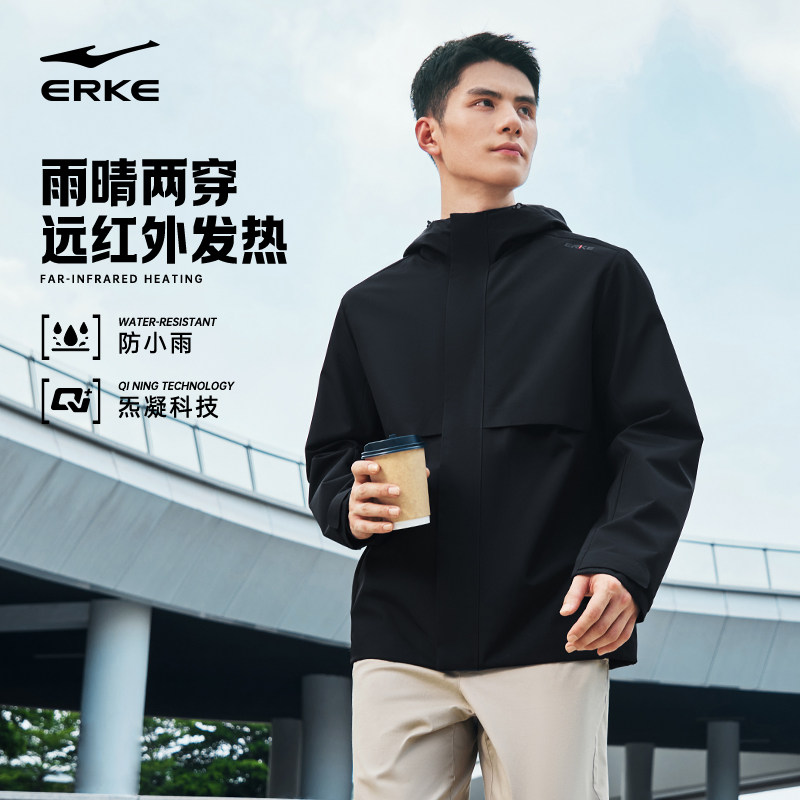 炁凝科技丨鸿星尔克外套2025冬季新款男士防小雨运动风衣夹克男款