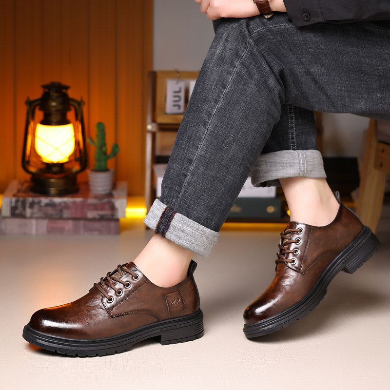 皮鞋男款高级感厚底增高英伦通勤大头德比鞋男冬季新款低帮马丁靴