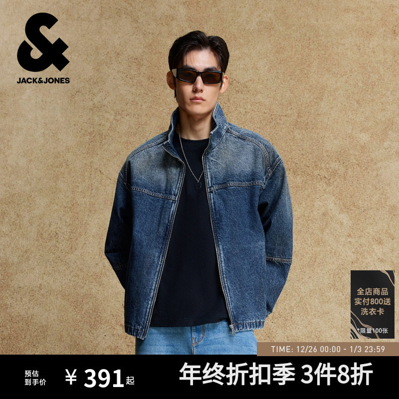 杰克琼斯男水洗牛仔外套秋季复古机车风重磅夹克宽松休闲上衣男装