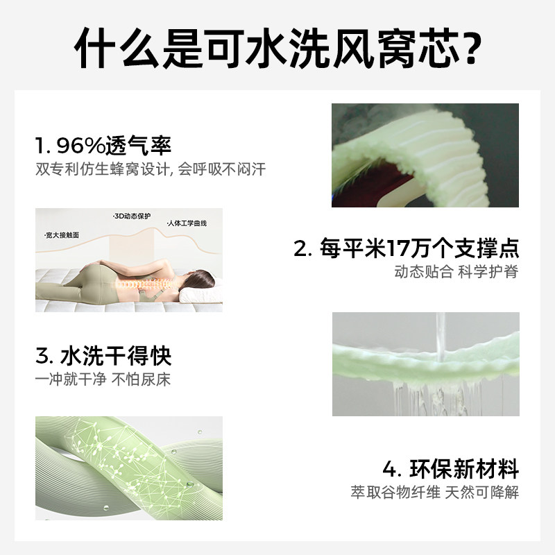 可带娃同睡的强护脊床垫,可水洗 透气率96%