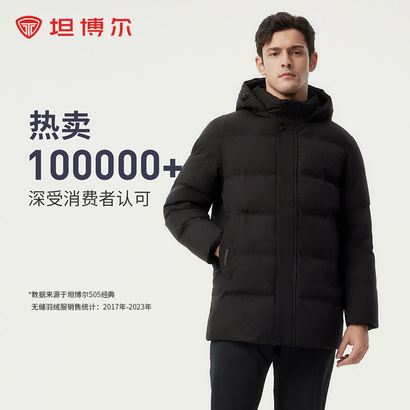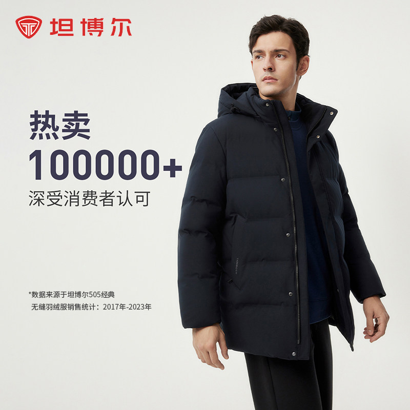 坦博尔2025年新款羽绒服男中长款可脱卸帽保暖爸爸装宽松防风外套