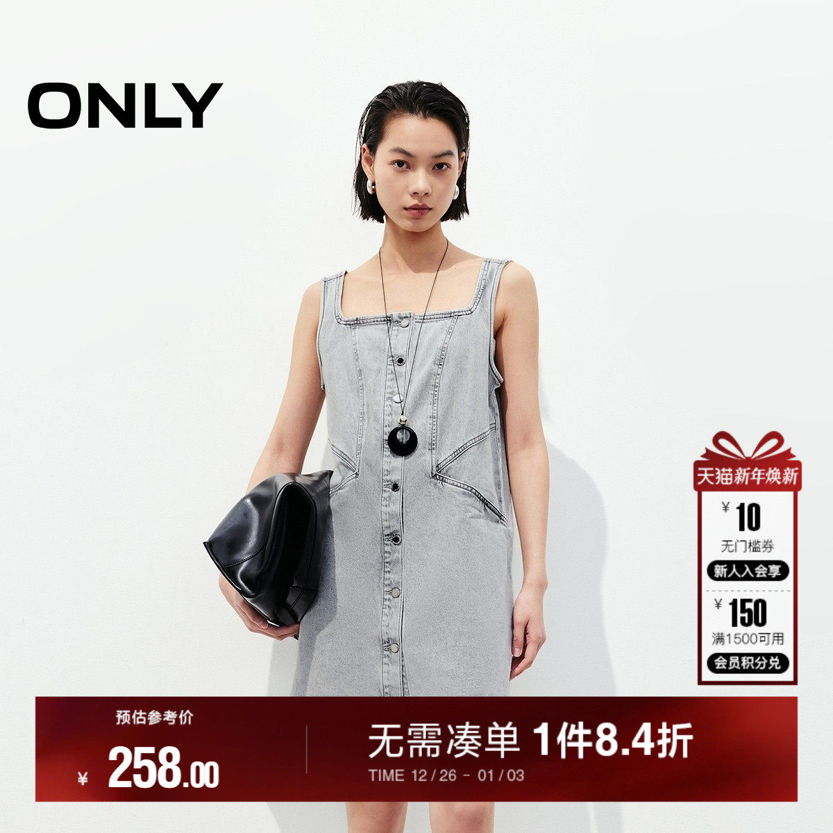 ONLY2025夏季新款复古水洗工艺隐藏贴袋直筒短裙牛仔背带连衣裙女
