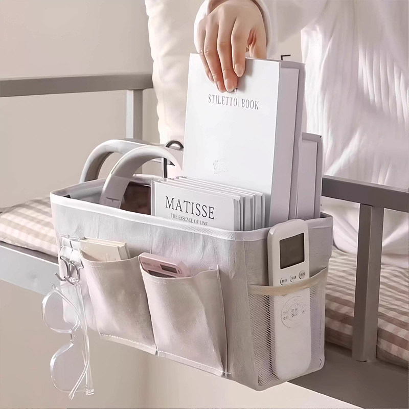 床头置物架宿舍上铺收纳神器大学生床上手机挂袋寝室床边布艺挂篮