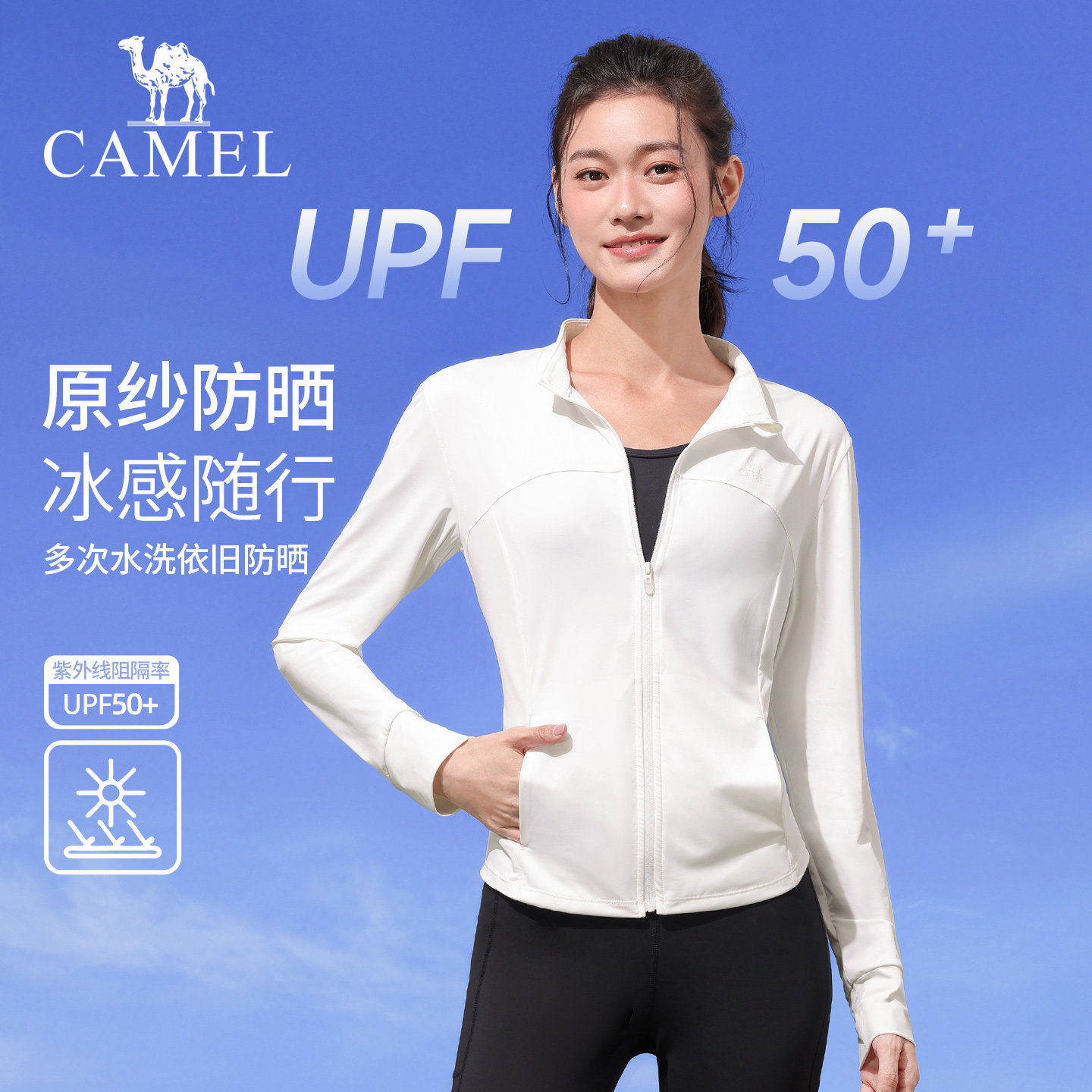 骆驼防晒衣女款春季凉感修身立领防紫外线外套透气长袖原纱防晒服