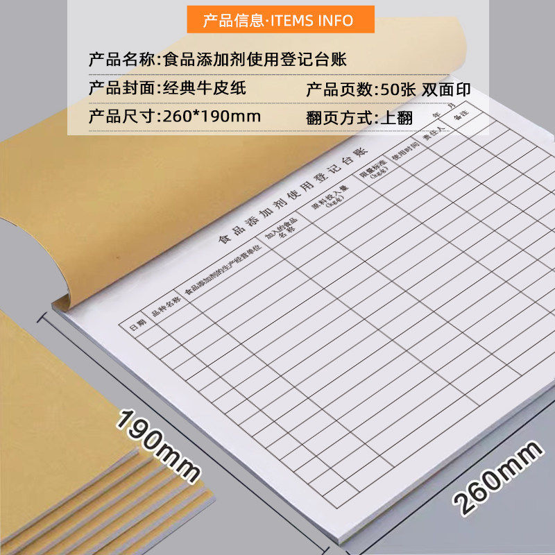 食品添加剂使用台账本食品留样本食品进货餐饮台账餐具消毒记录本