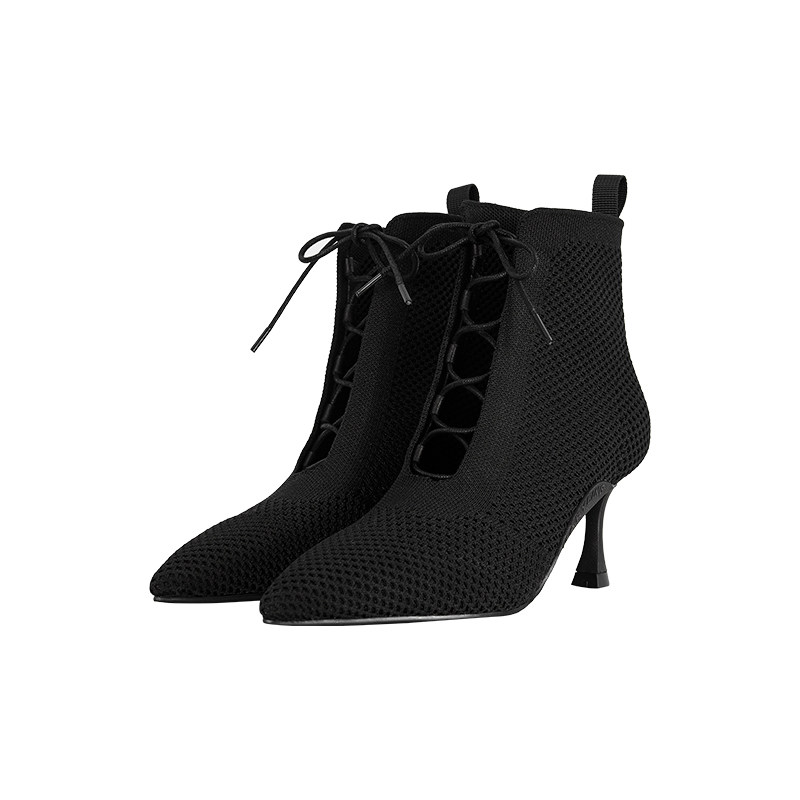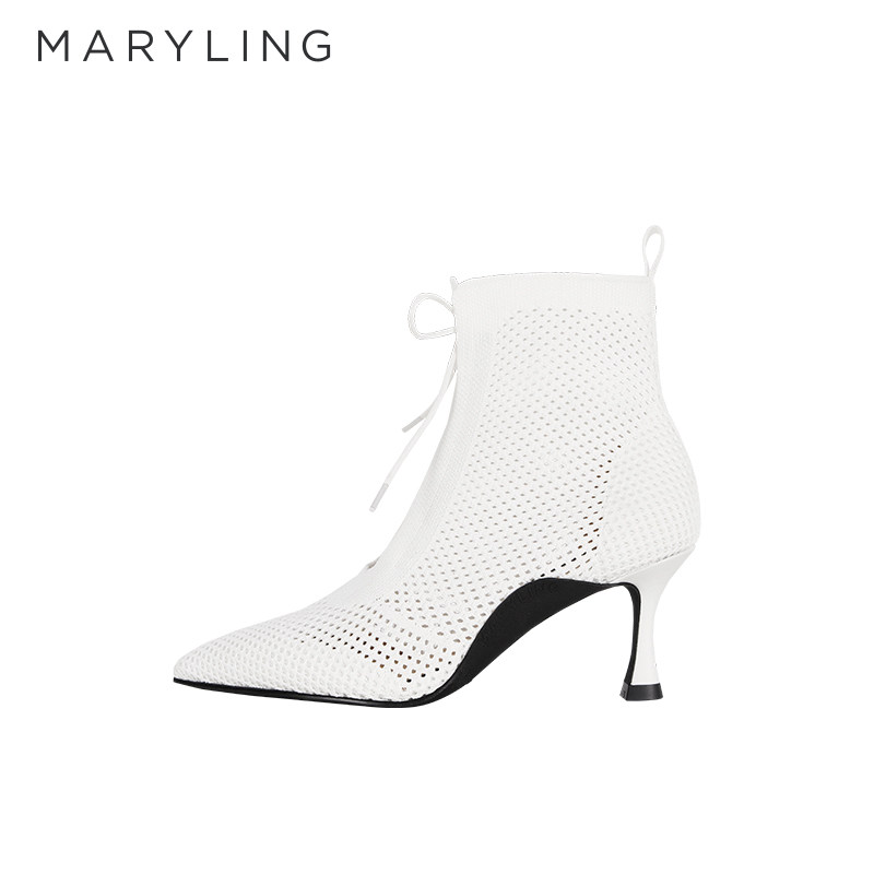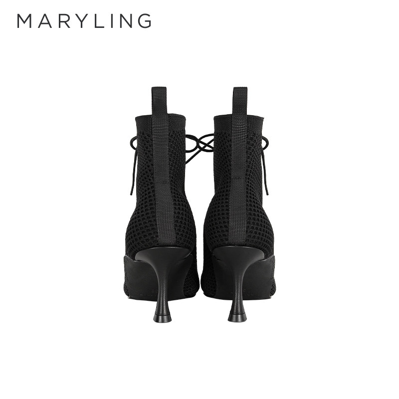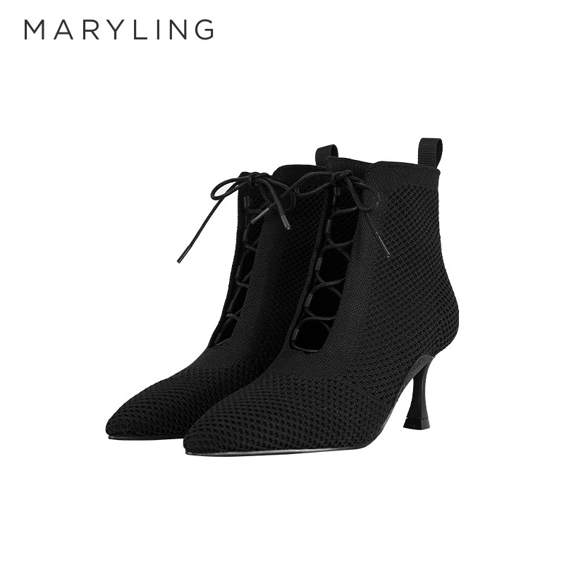 MARYLING玛俪琳2025春季新品简约针织系带尖头浅靴A8FAWSB001