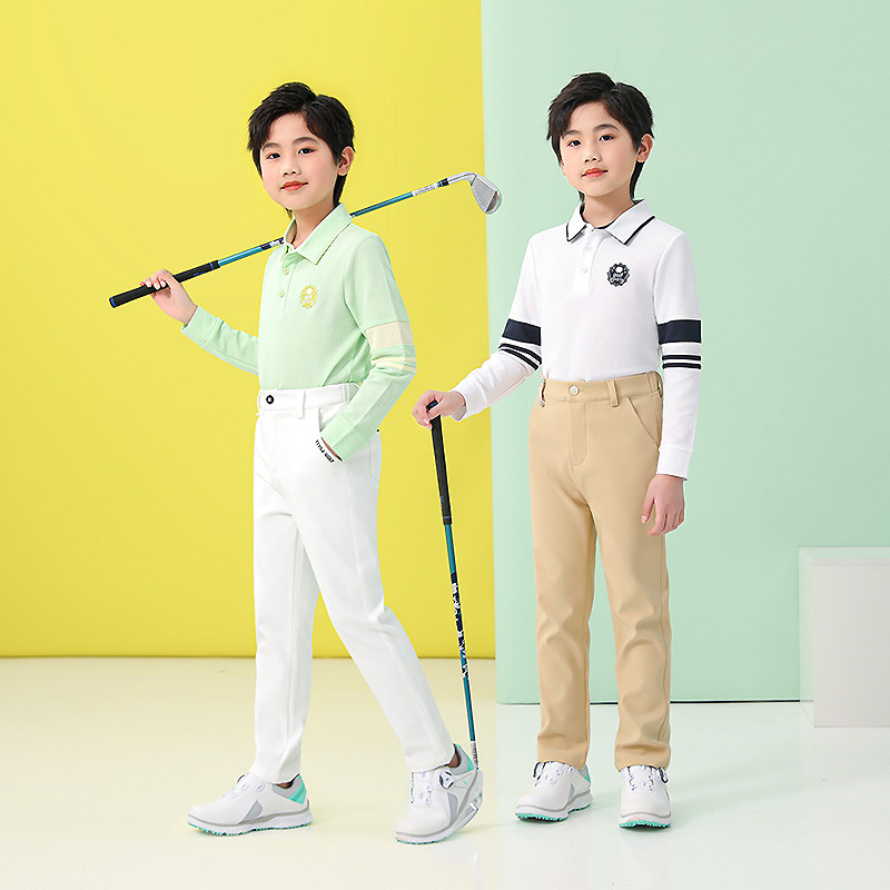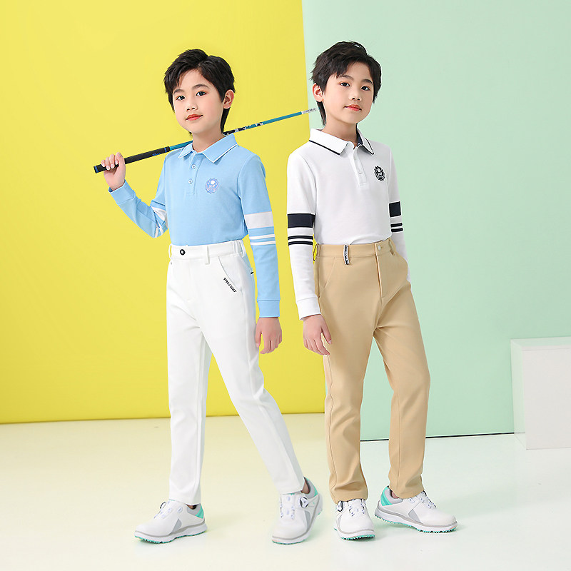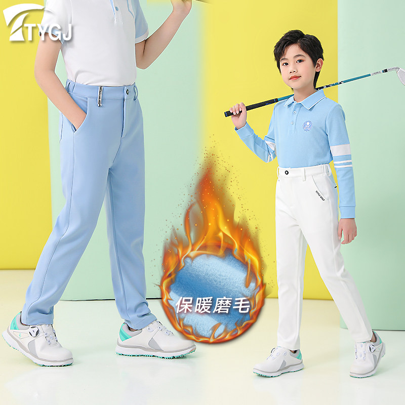 高尔夫儿童男童加绒磨毛长裤子保暖弹力松紧腰中大童学生运动球裤