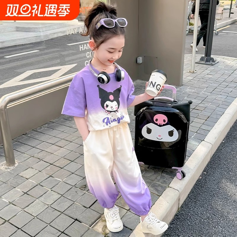 女童套装衣服夏季夏装2025新款女宝宝洋气时髦儿童短袖库洛米薄款