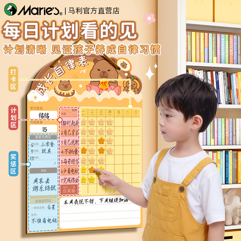马利儿童成长记录表计划表墙贴奖励孩子的积分卡学习暑假积分榜奖励记录表打卡板奖励贴纸自律表时间管理神器