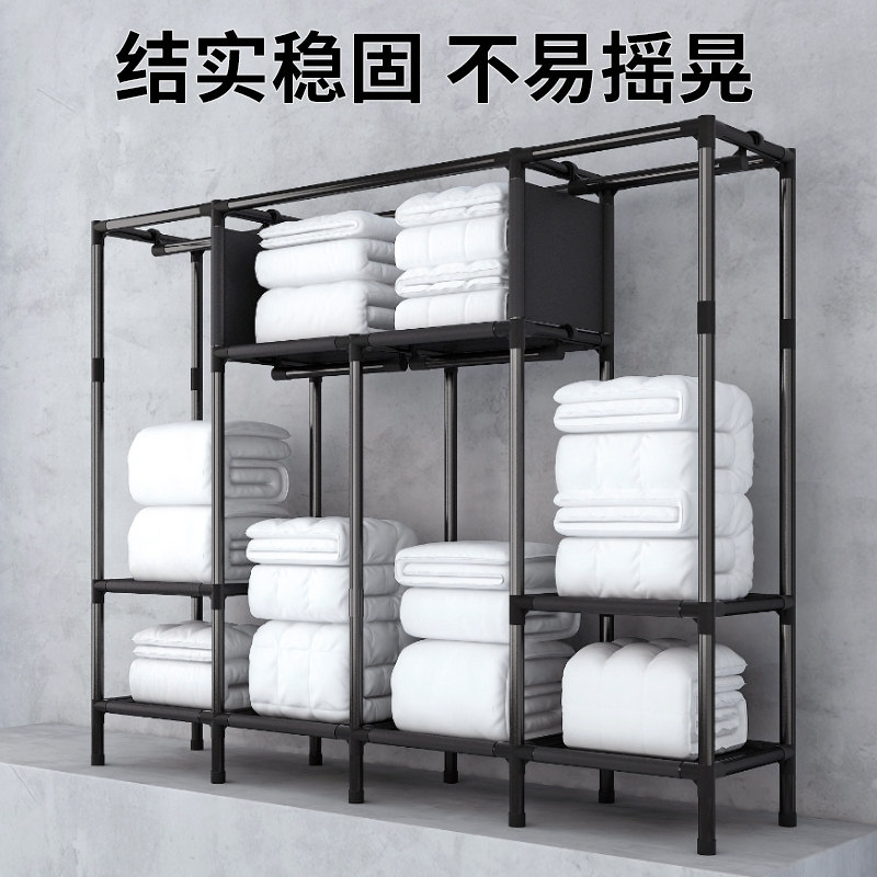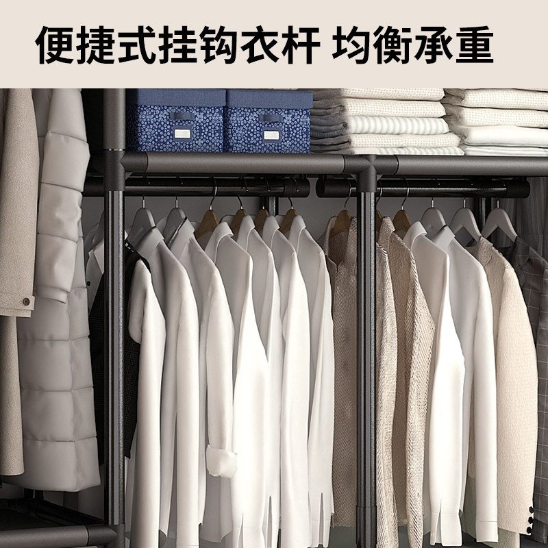 简易布衣柜家用卧室组装全钢架加厚加粗出租房收纳柜子折叠结实