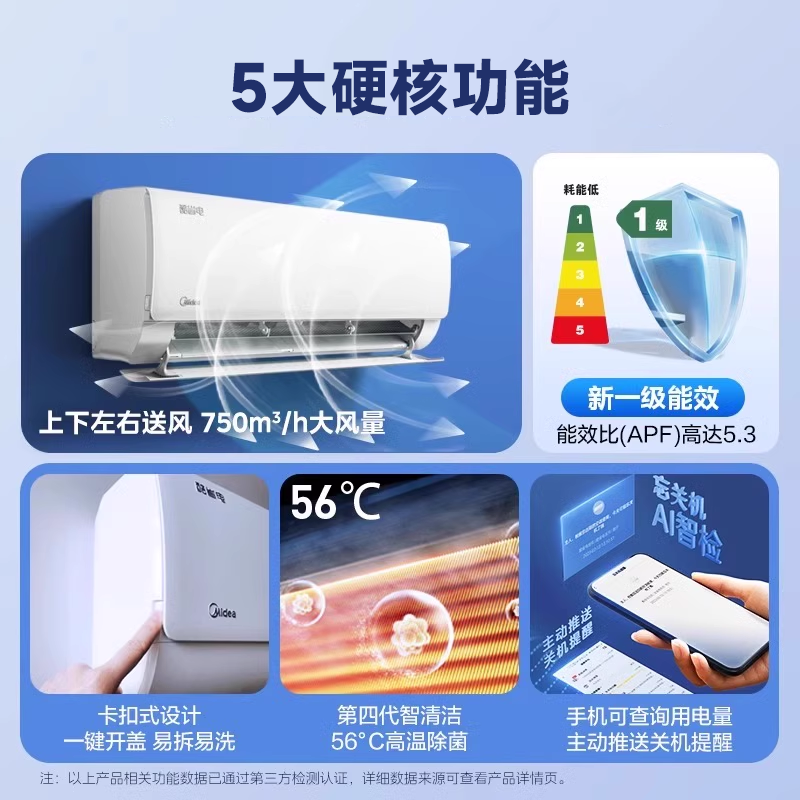 美的空调酷省电Pro大1匹1.5匹一级能效变频冷暖家用挂机官方正品