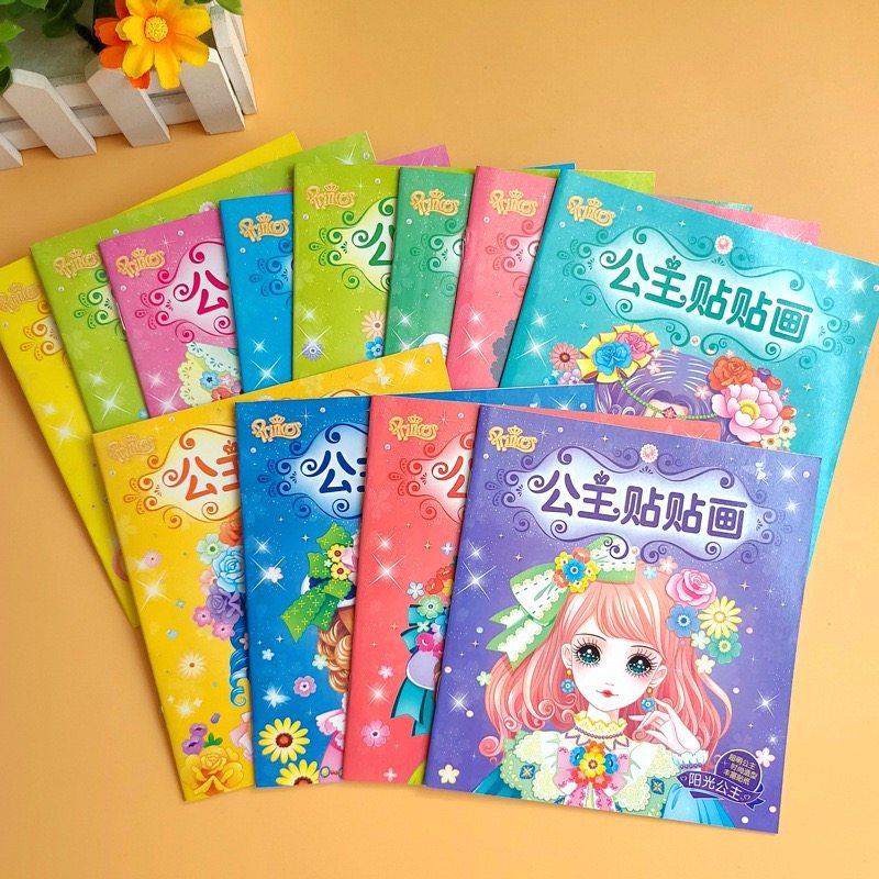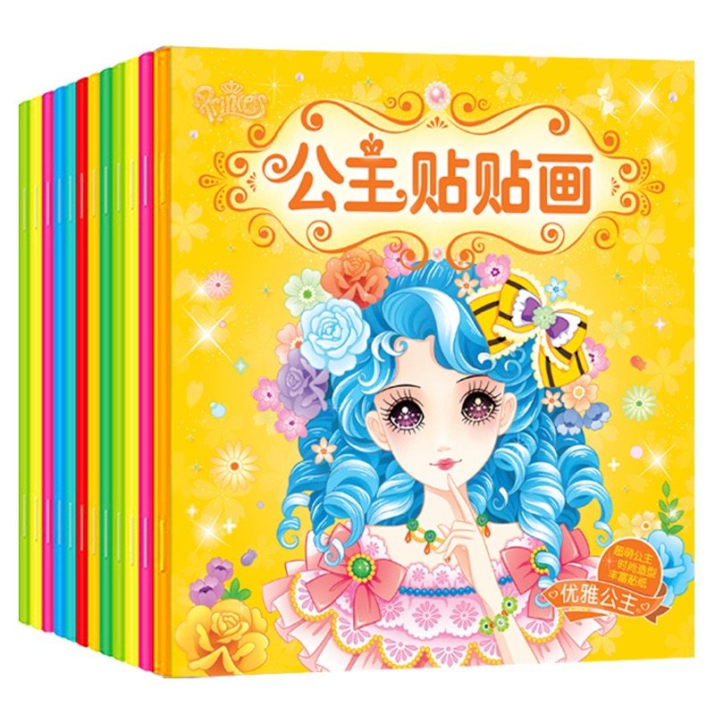 新款公主换装贴纸书女孩卡通粘贴画3-6岁儿童动脑益智早教粘贴画