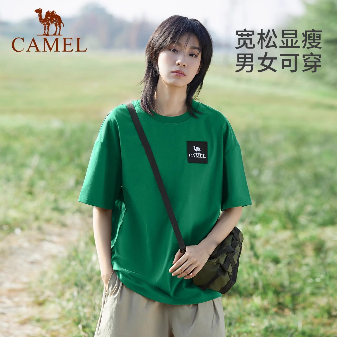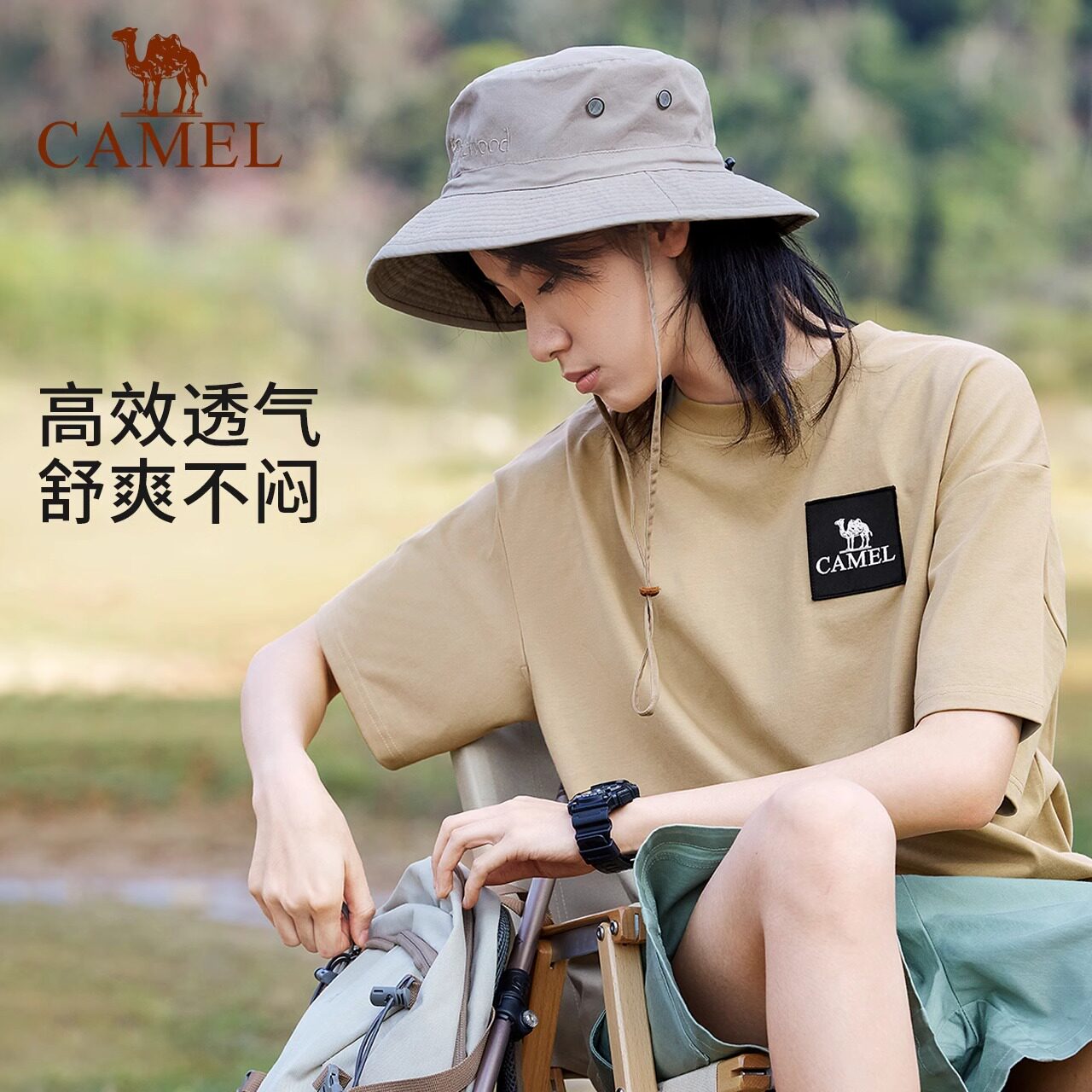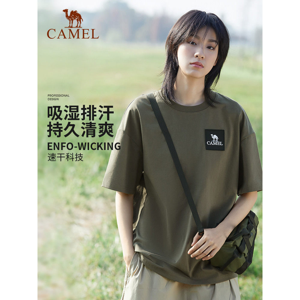 骆驼户外速干T恤男夏季宽松黑色半袖上衣棉t吸湿排汗徒步登山T恤