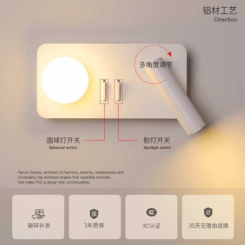 led壁灯床头灯现代简约酒店宾馆阅读灯创意个性北欧家用卧室灯具