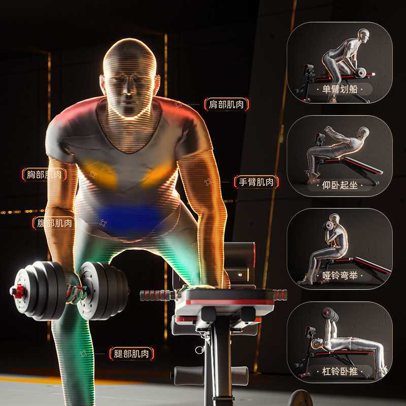 哑铃凳仰卧起坐健身器材家用多功能腹肌板可折叠飞鸟椅卧推凳