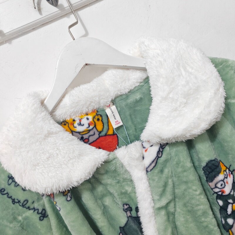 M-XL码 歌瑞曼睡衣 秋冬 女法兰绒翻领斜襟家居服睡衣套装