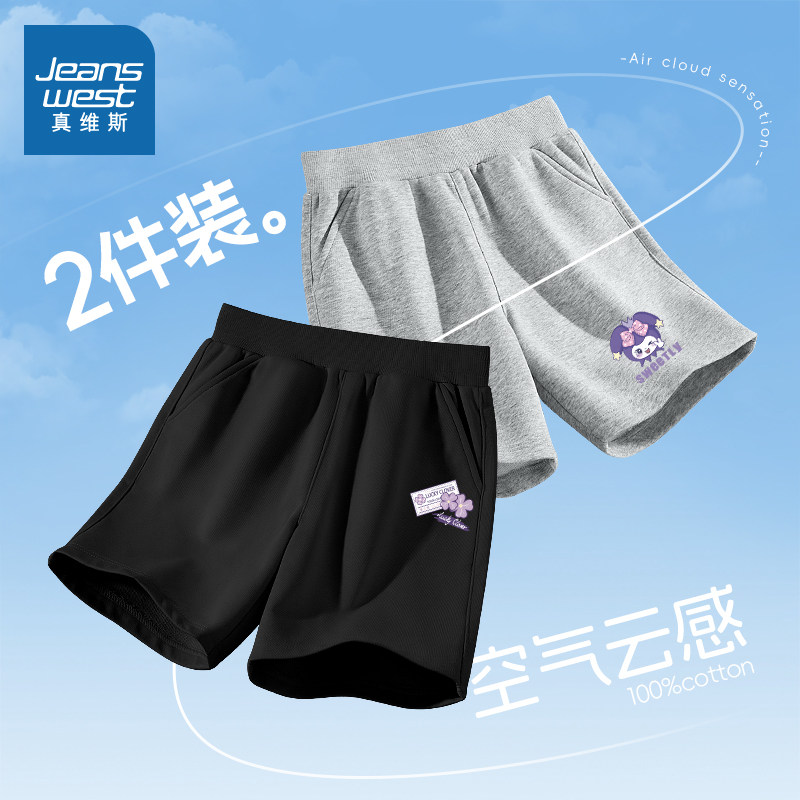 真维斯女童裤子夏薄款女大童运动裤休闲宽松女孩中裤儿童短裤外穿