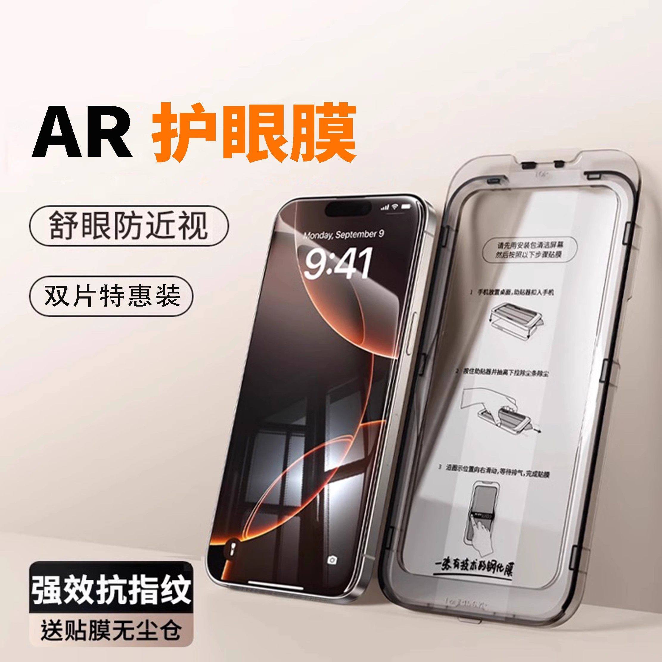 【AR护眼】适用苹果17promax钢化膜iphone16pro防窥15护眼Plus手机贴膜全屏14防蓝光13新款12屏幕保护11官X摔