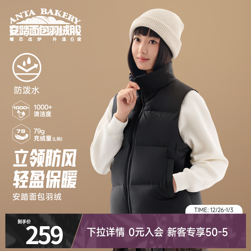 安踏羽绒马甲女2025新款冬季加厚保暖连帽短款时尚休闲背心外套