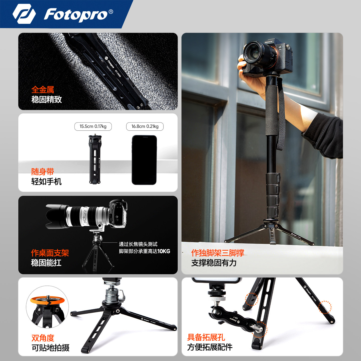 富图宝SY368S铝合金独脚架三角撑底座相机微单旅游婚礼跟拍录拍摄支撑架演唱会直播拍照便携三脚架稳定器支架