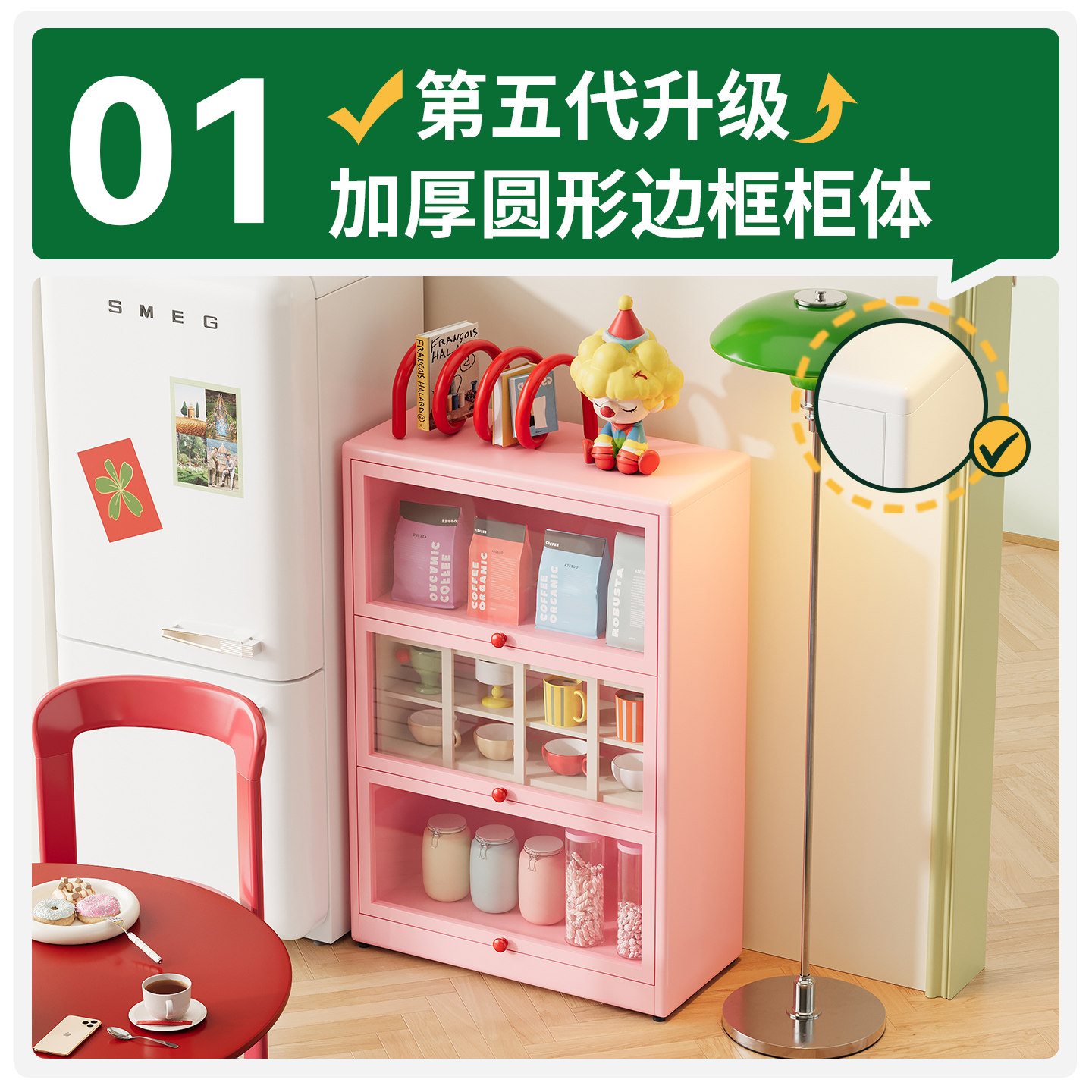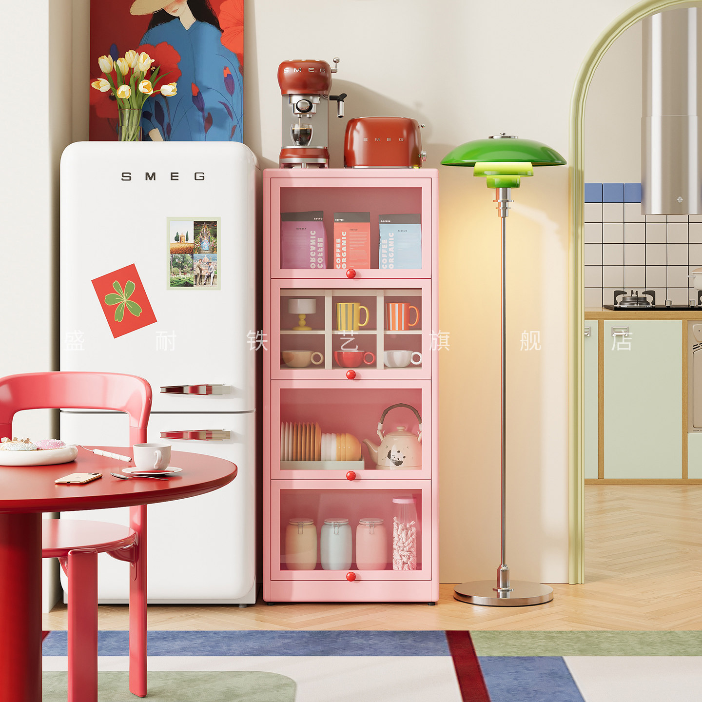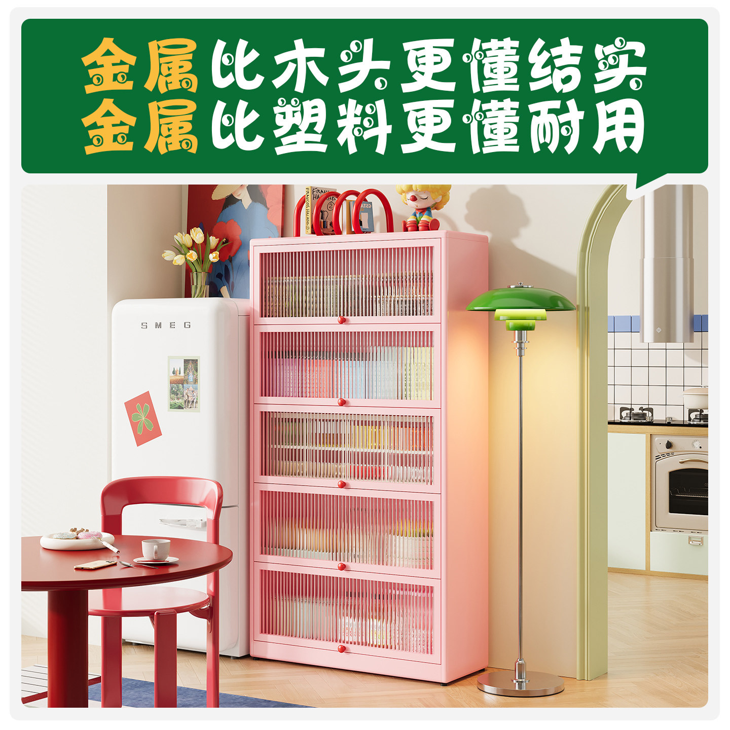 厨房钢制简约靠墙餐边柜储物柜一体落地带门防尘收纳铁皮柜置物架