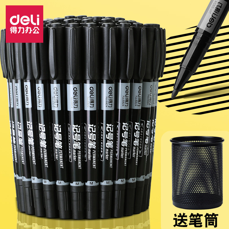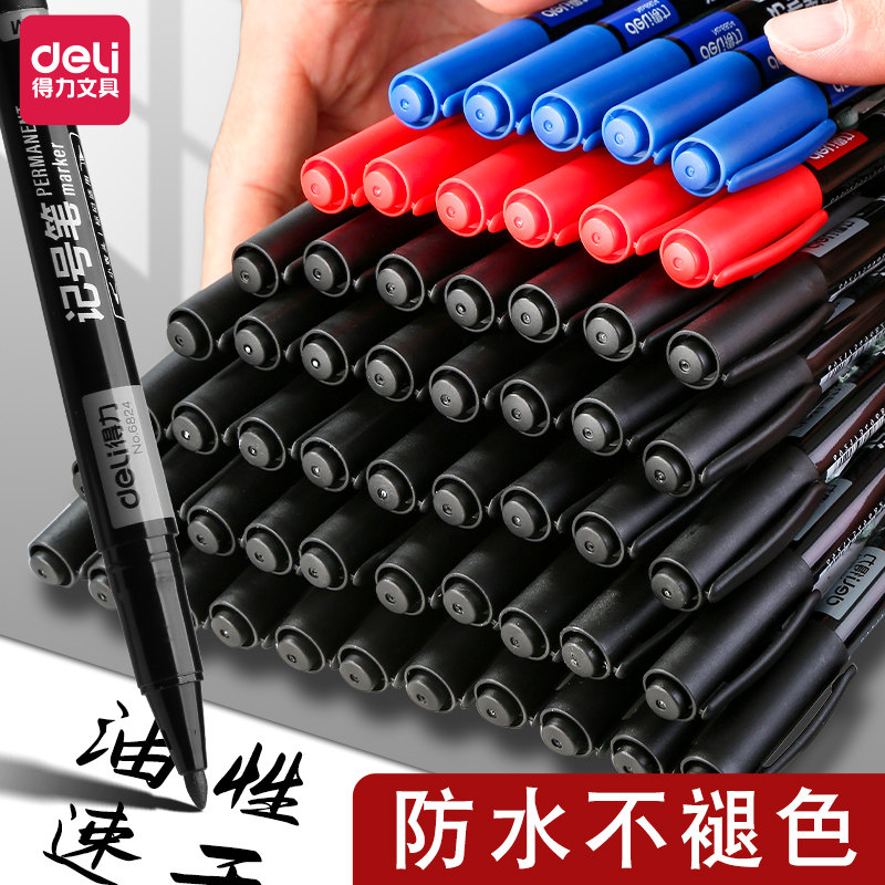 得力小双头记号笔黑色粗细两头标记笔美术专用小学生油性快干防水防油不掉色儿童彩色专用勾线笔大头笔水彩笔