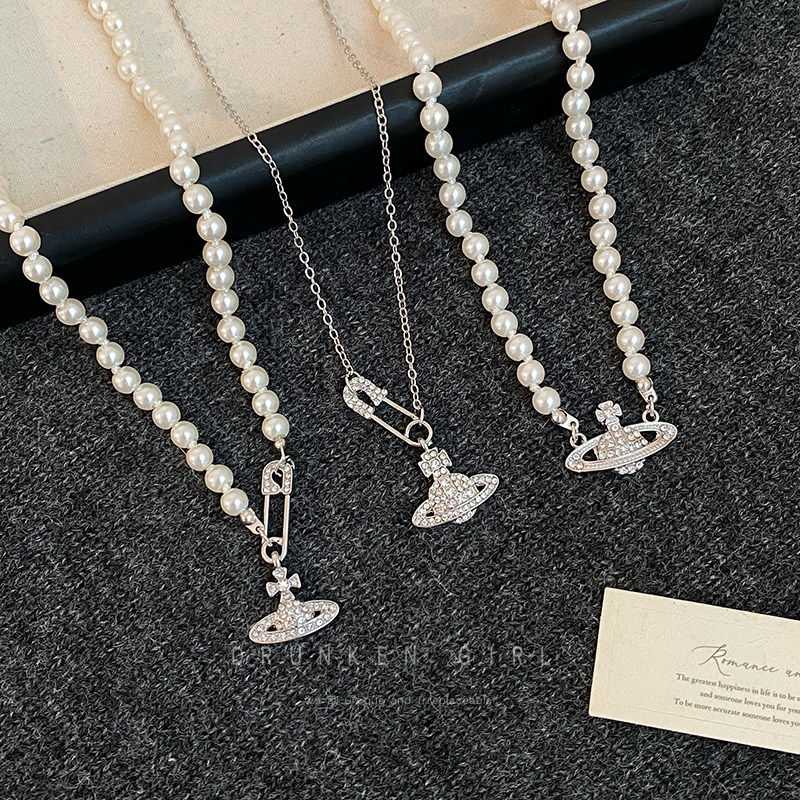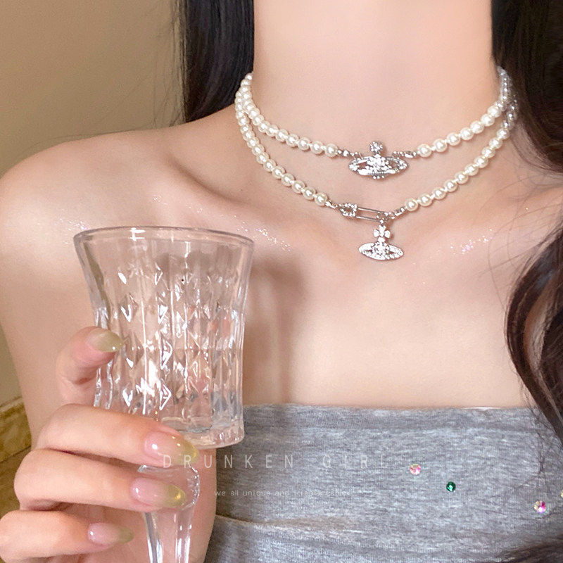 西太后土星珍珠叠戴项链女冬2026爆款毛衣链双层别针颈链配饰多层