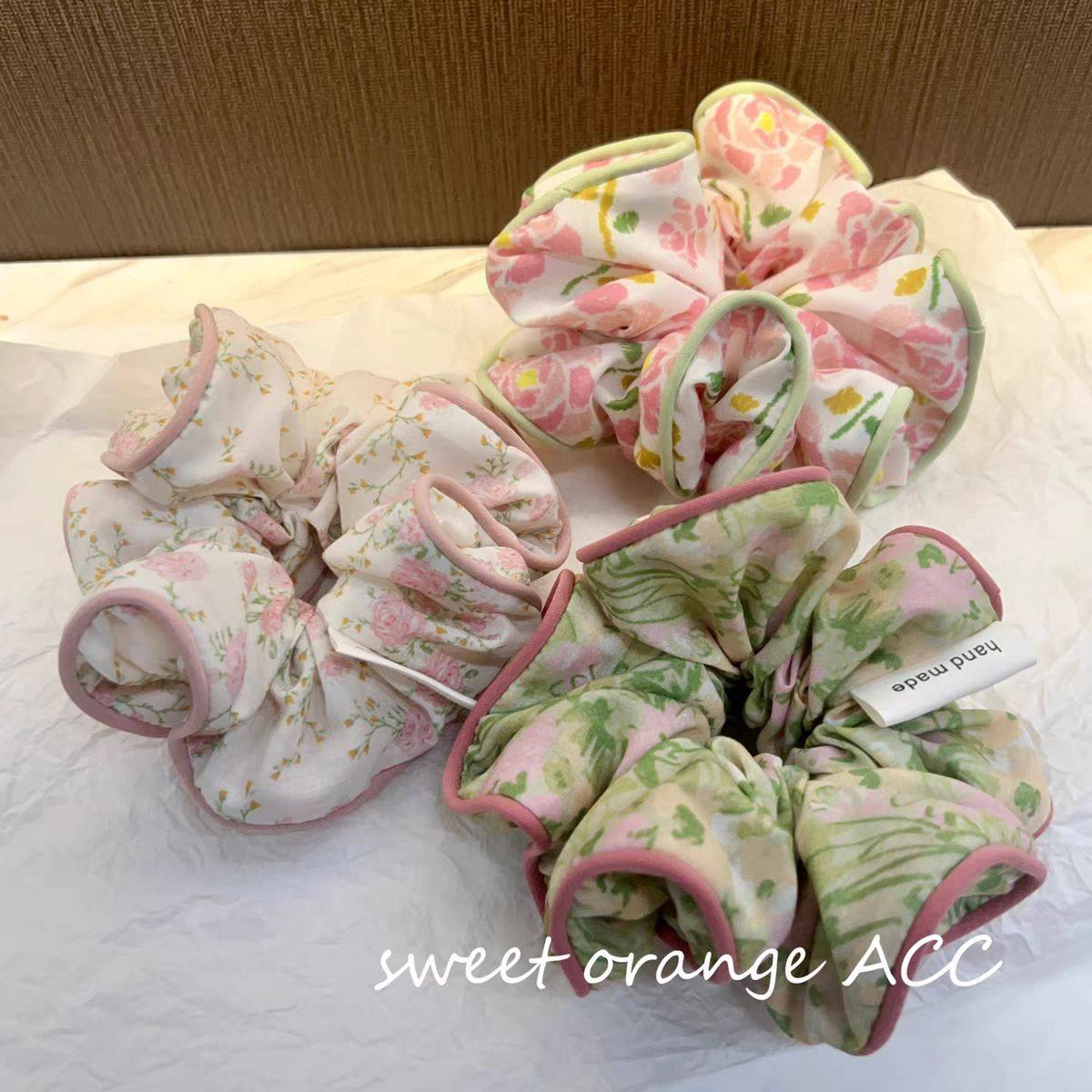 韩国法式复古碎花大肠圈森系甜美发圈扎头发绳丸子头马尾头绳布艺