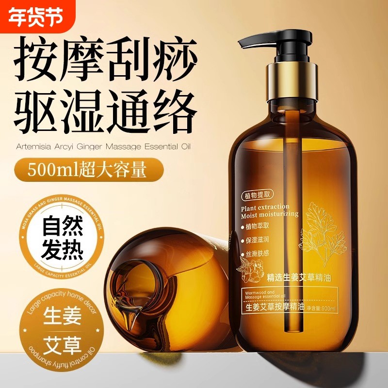 艾草生姜按摩精油通经络刮痧发热排毒开背免洗夫妻推拿全身体spa