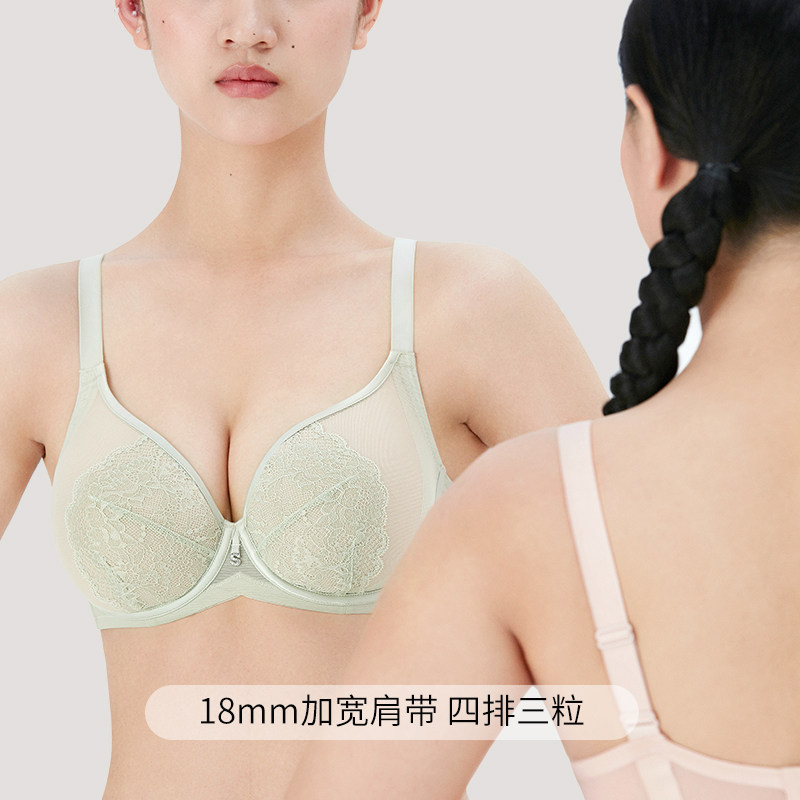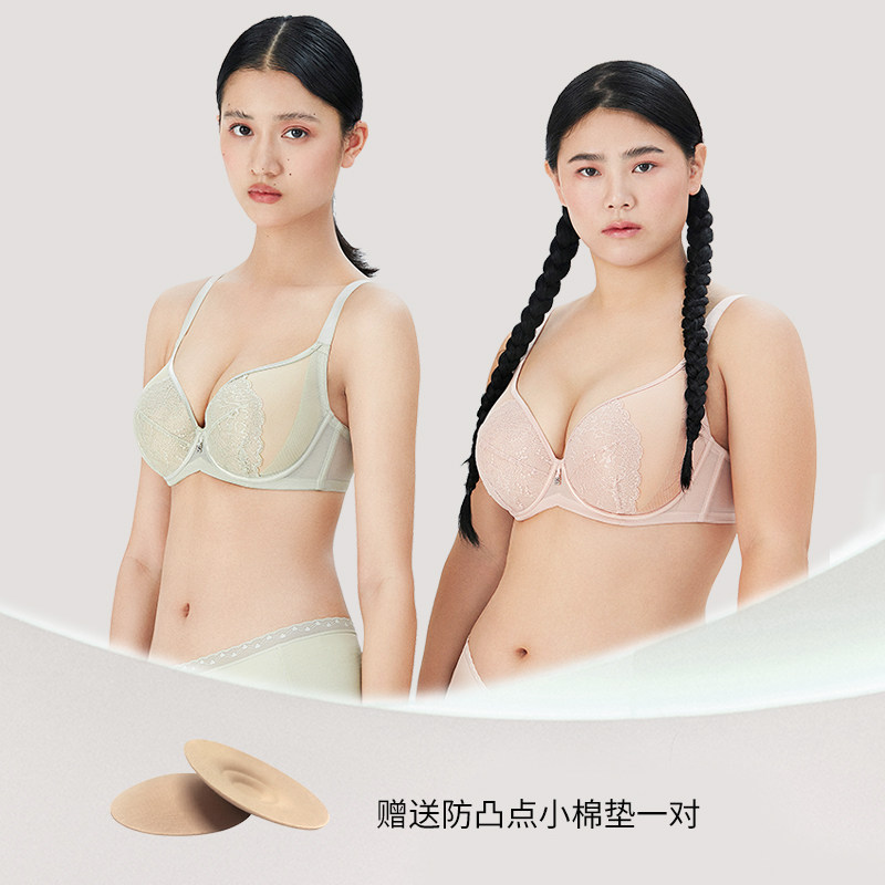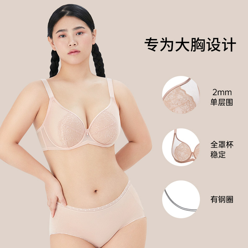 内购会5折秒|桑扶兰薄款大胸显小全罩杯大杯文胸蕾丝内衣女