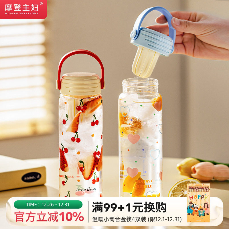 摩登主妇带提手玻璃杯大容量水杯女杯子高颜值茶水分离杯冷泡茶杯