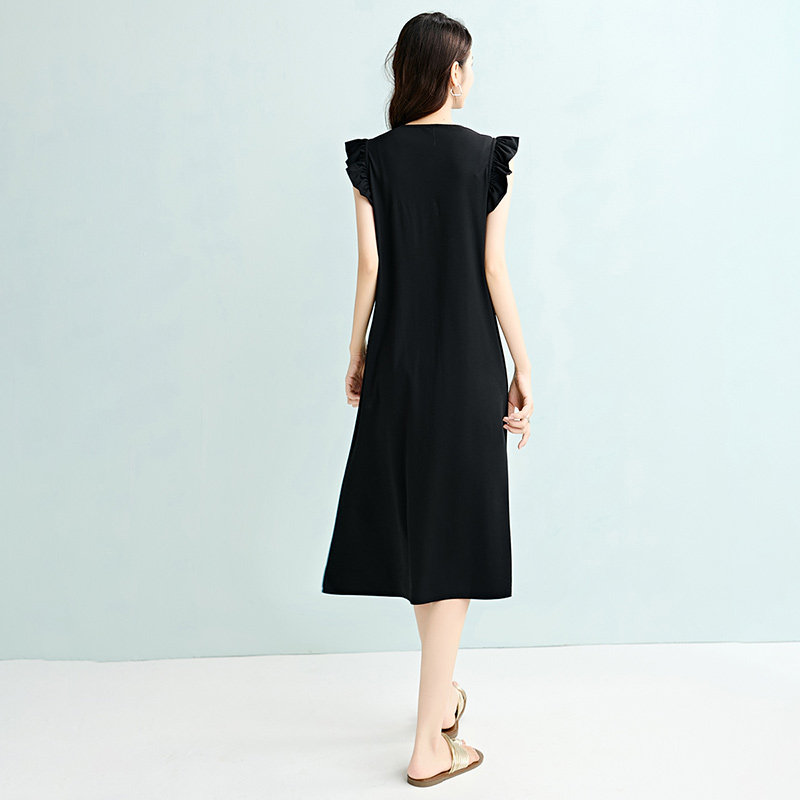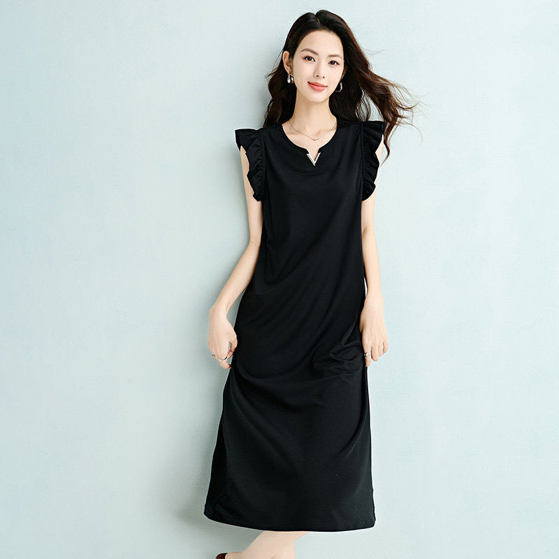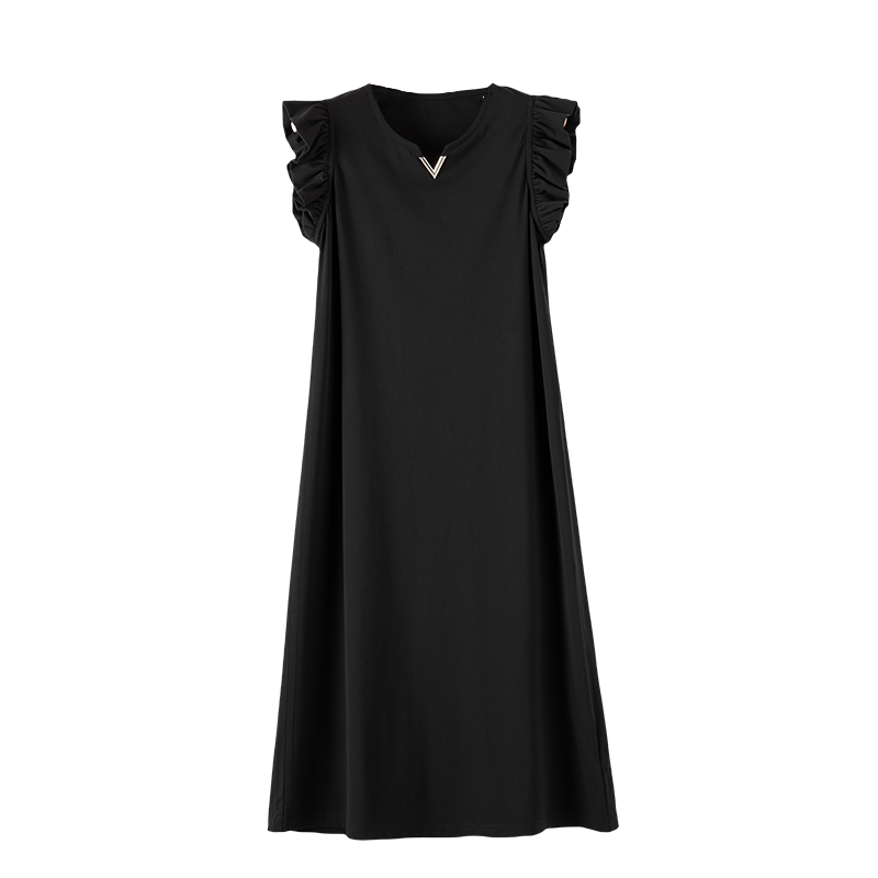 QY2 2026年春夏新款女装黑色无袖简约风格宽松版型连衣裙