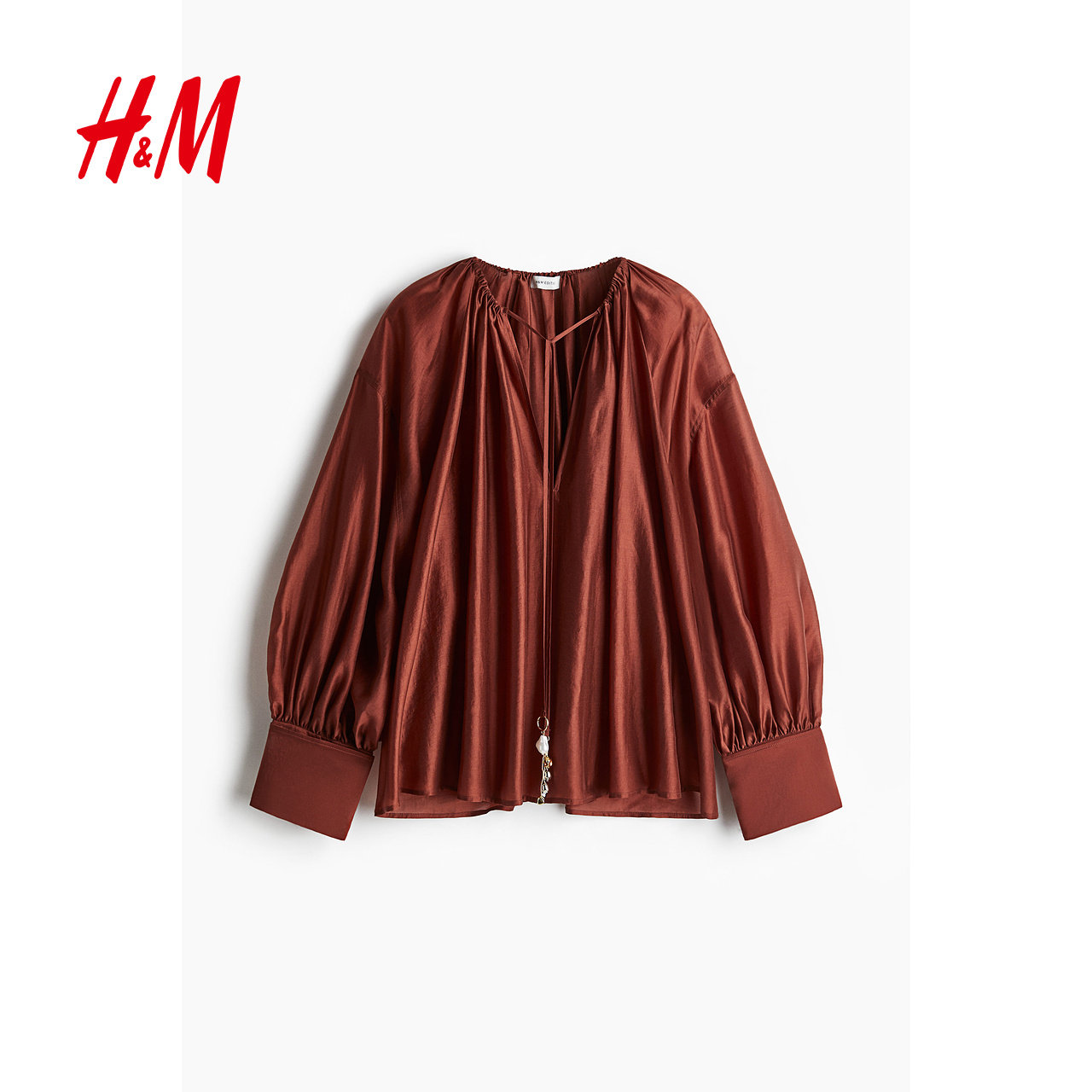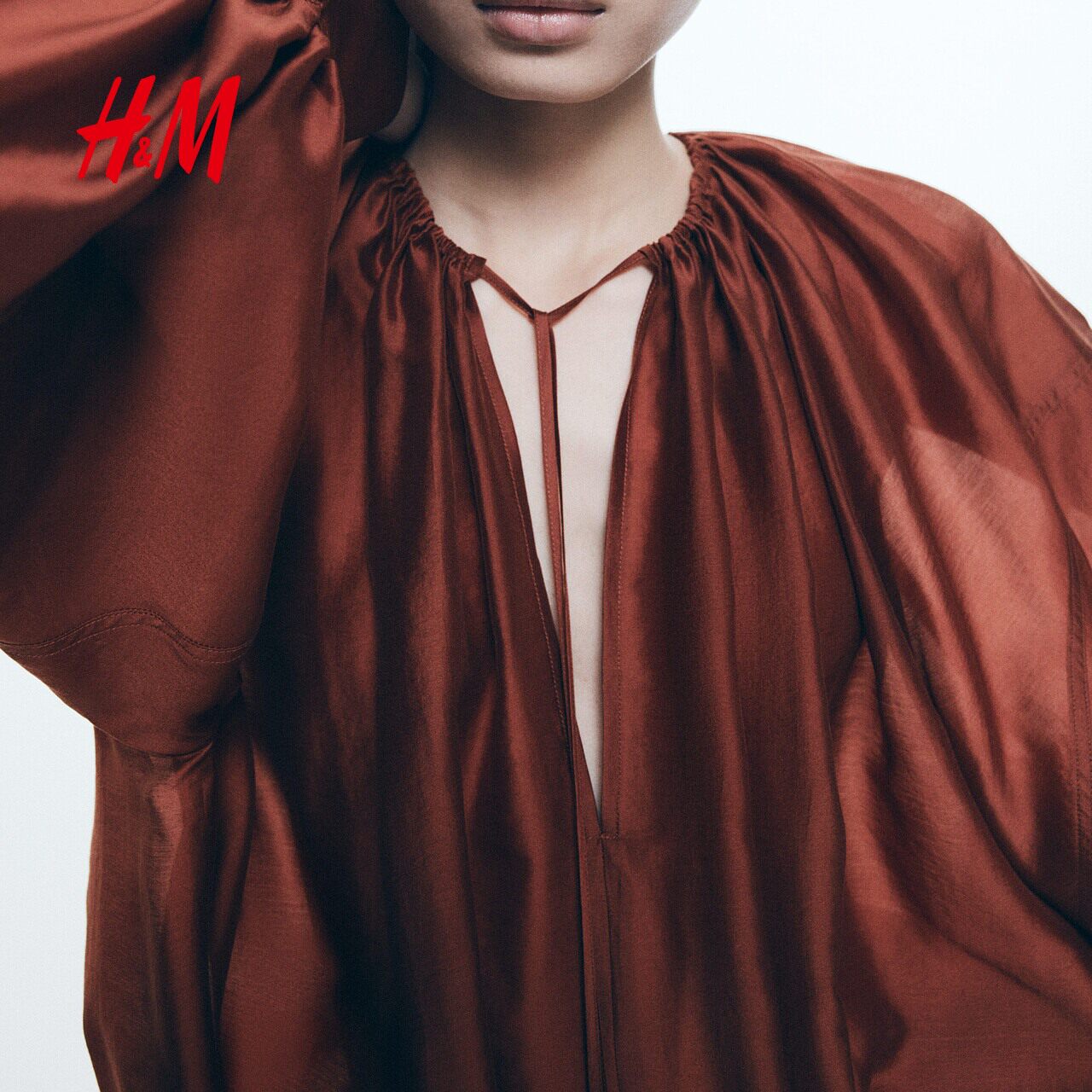 HM女装衬衫春季莱赛尔混纺长袖礼服时尚休闲衬衣1275826