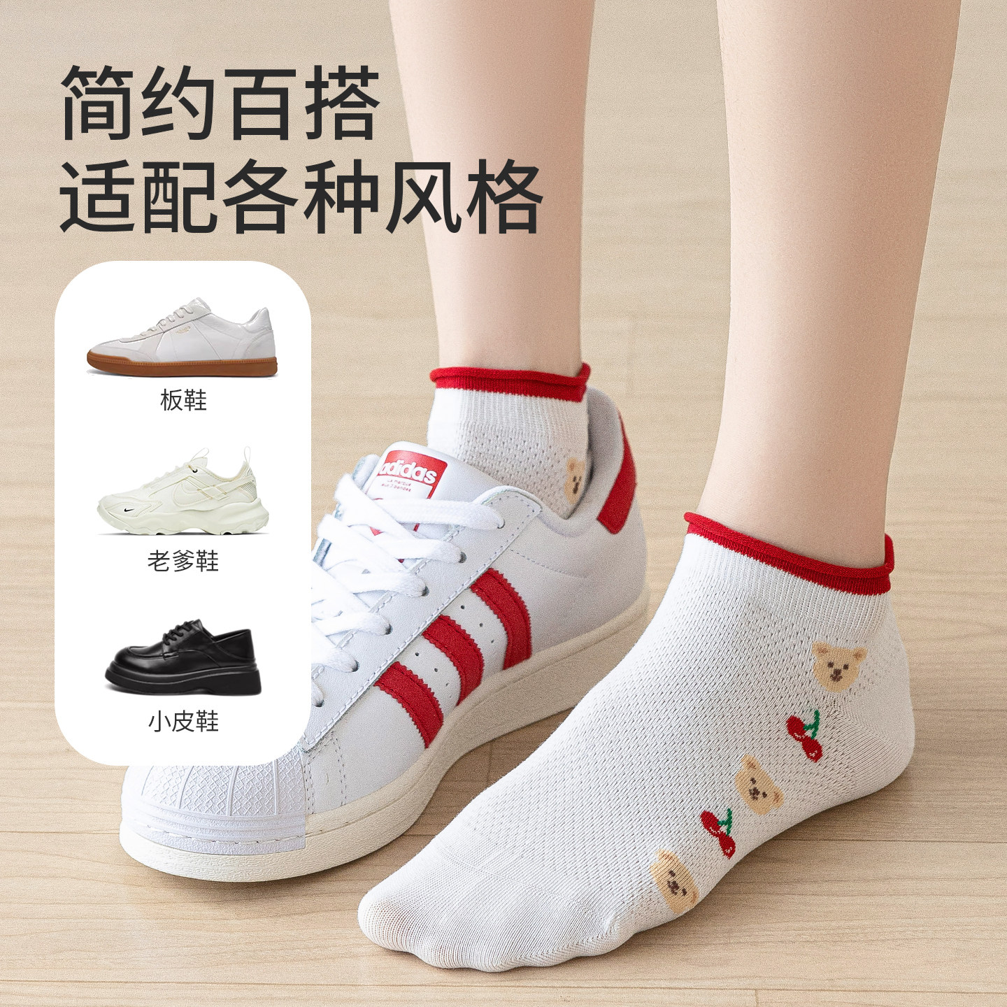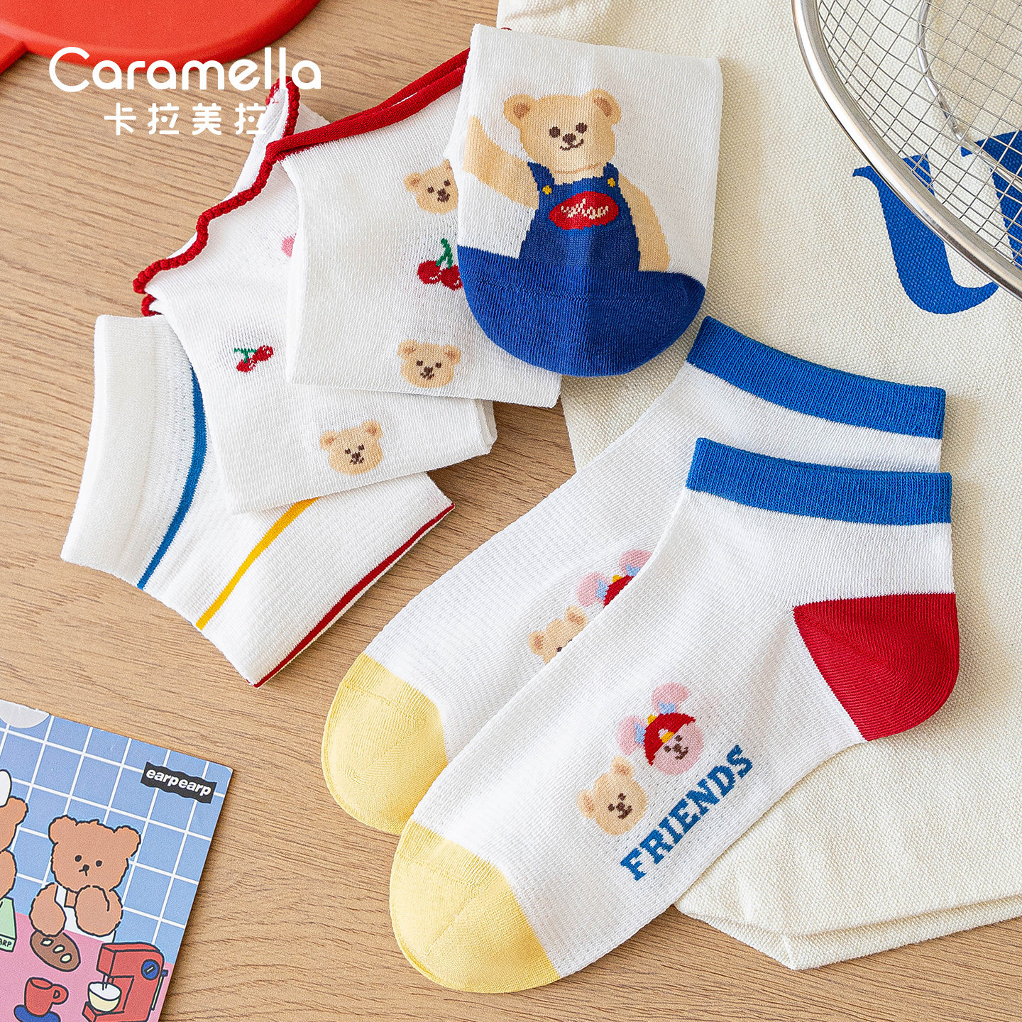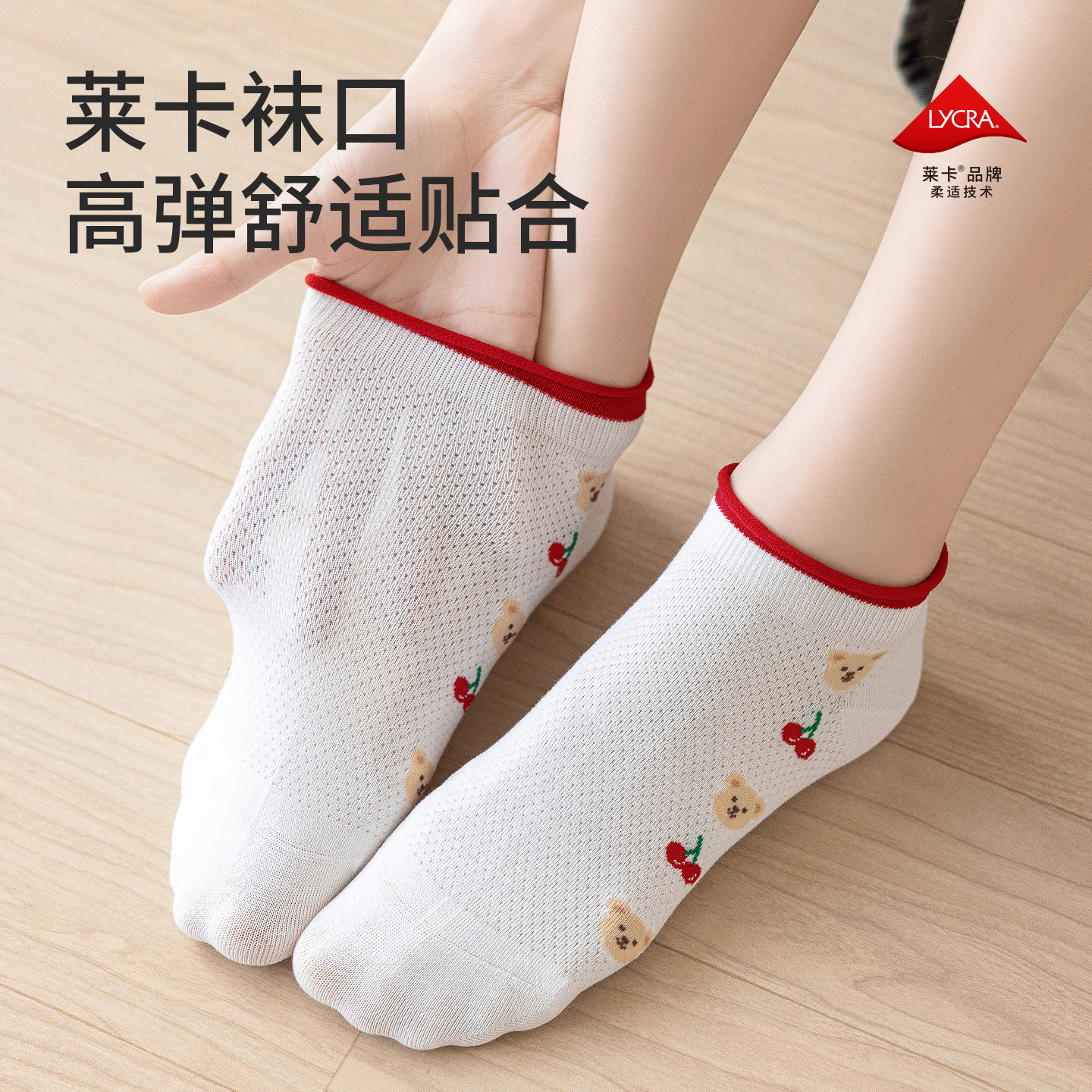 卡拉美拉2026春夏新品船袜女薄款透气网眼小熊可爱短袜学生袜子