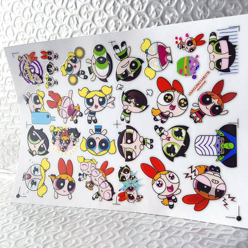 飞天小女警镂空立体防水手帐笔保温水杯装饰UV转印贴纸水晶标定制
