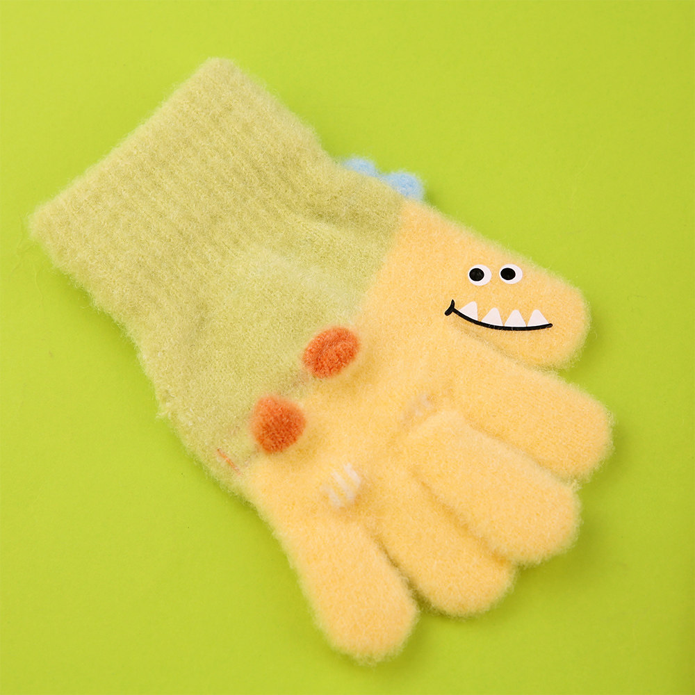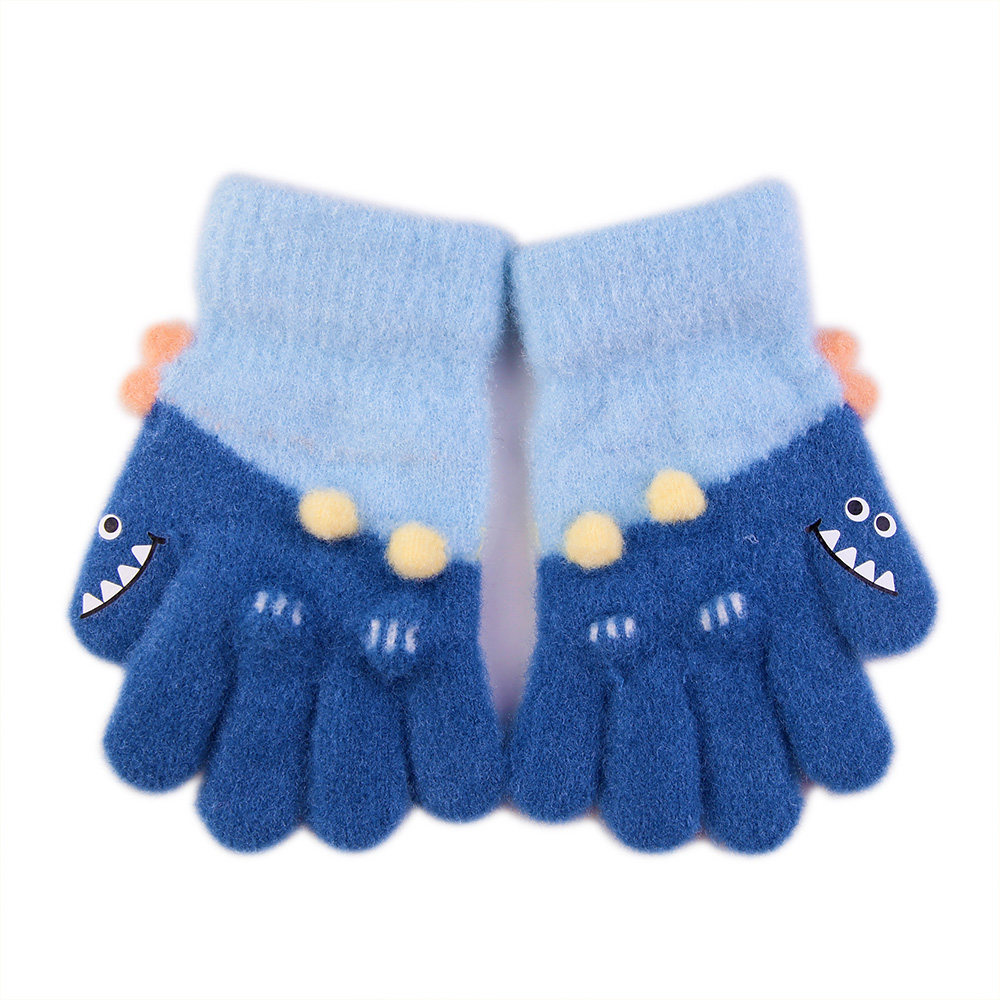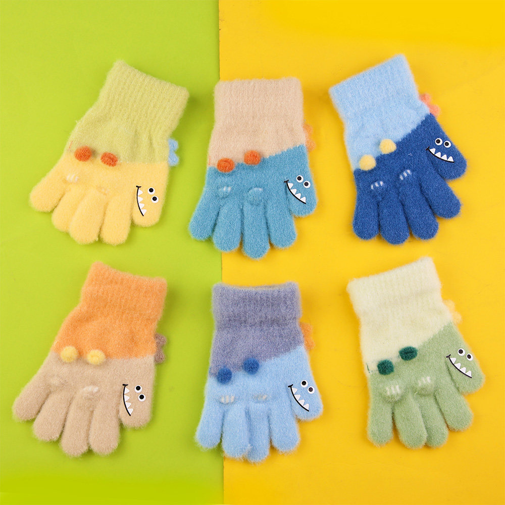 3-5岁儿童男童手套全指秋冬季卡通恐龙男孩五指小童分指冬天加绒