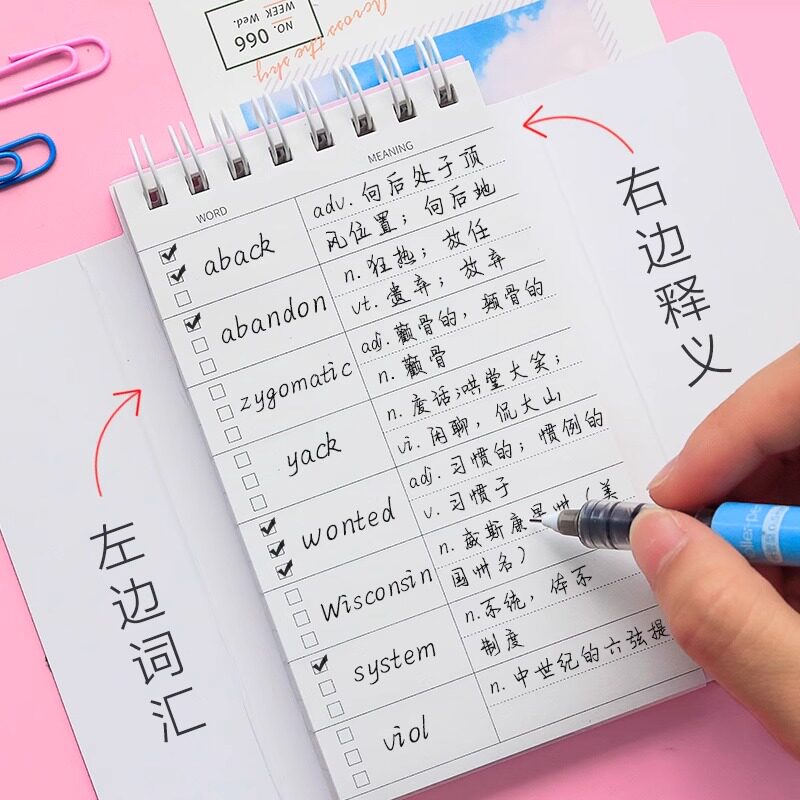 易忘英语单词背记本子带遮挡板随身便携记单词小本子创意文具口袋笔记本小号外语日语背单词环扣式记忆笔记本
