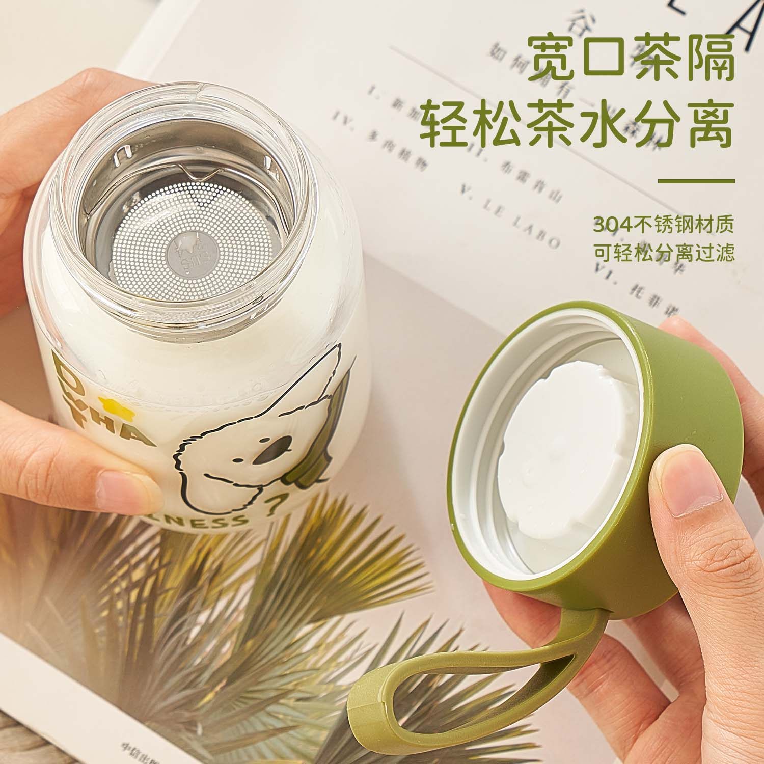 宝选一键开盖水杯车载双层玻璃杯男士泡茶保温速开茶水分离杯茶杯
